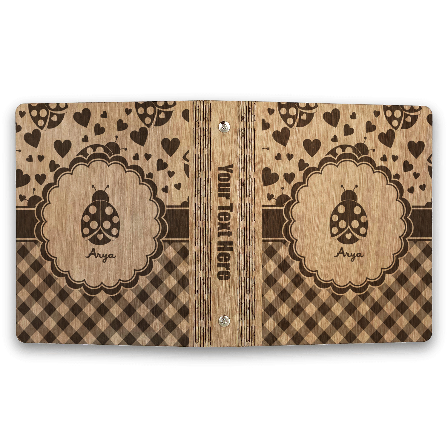 Made from premium hardwood, these are laser engraved then polished with wax to give a nice sheen and smooth feel to the product. The inside of the binders are finished with a faux leather material which is bonded to the inside of the wood to strengthen the wood and give the inside the same refined finish. The rustic brown and gold leather material adds a nice classic touch to the binders.