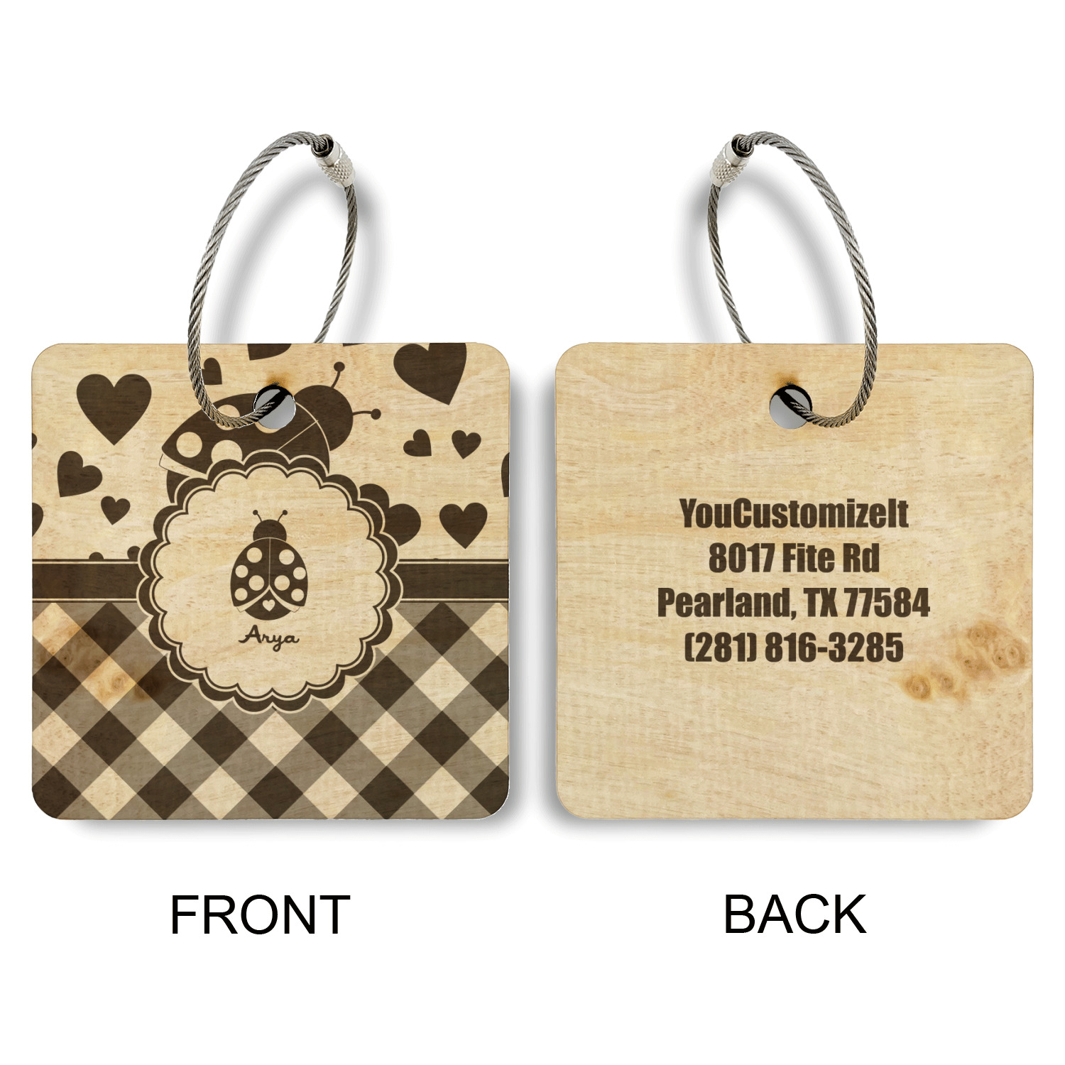 Made from a premium hardwood, these luggage tags are laser engraved and cut just for you. The front contains your design of choice and the back has your contact information to ensure your luggage gets back to you if ever lost.
