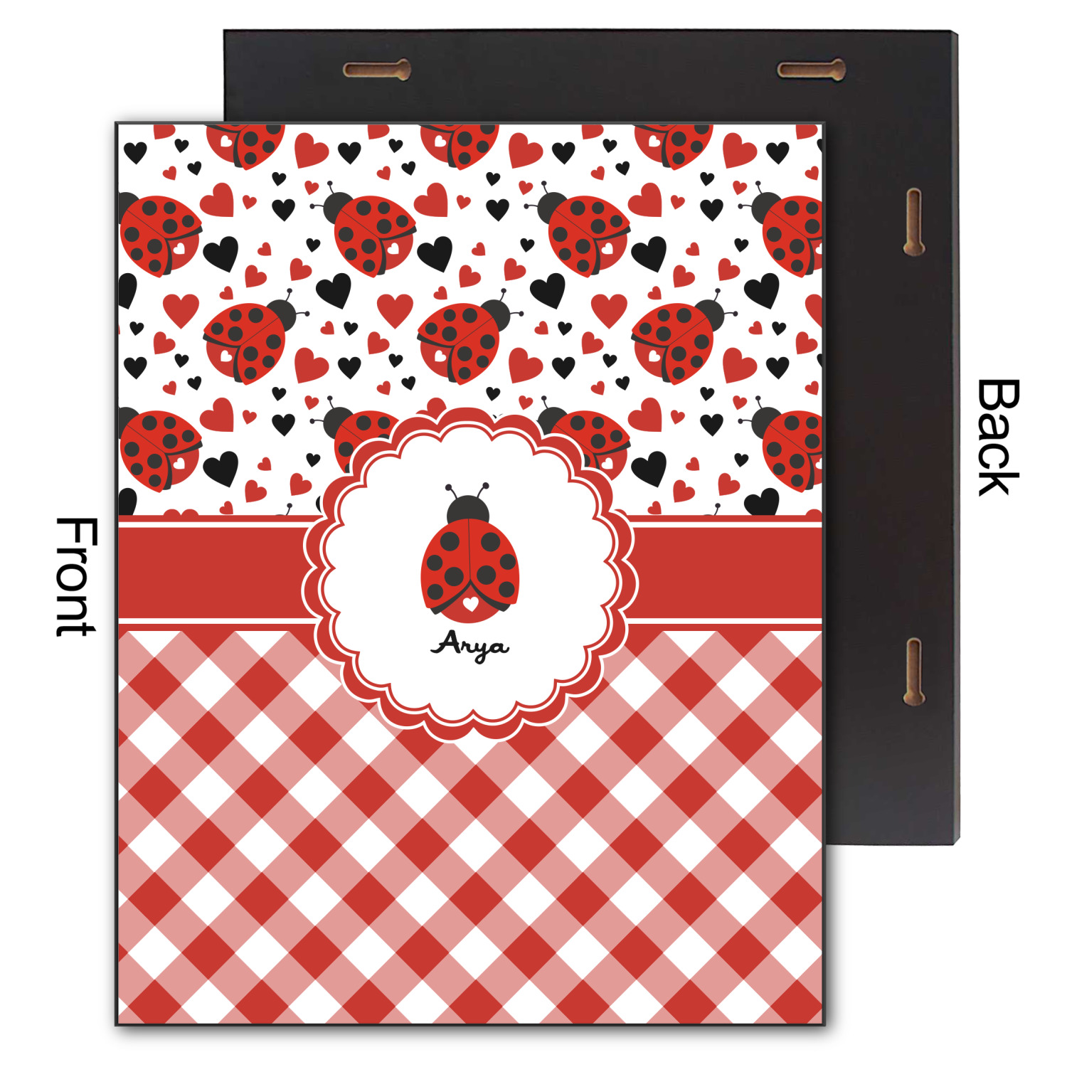 Ladybugs stand for luck so why not start your day off surrounded by the symbol of luck? On the top part of the design our little ladybugs are surrounded by coordinating black and red hearts. As if the ladybugs weren't sweet enough we added a touch of nostalgia by including the all American red and white gingham pattern to the bottom of this wonderful and warm design.