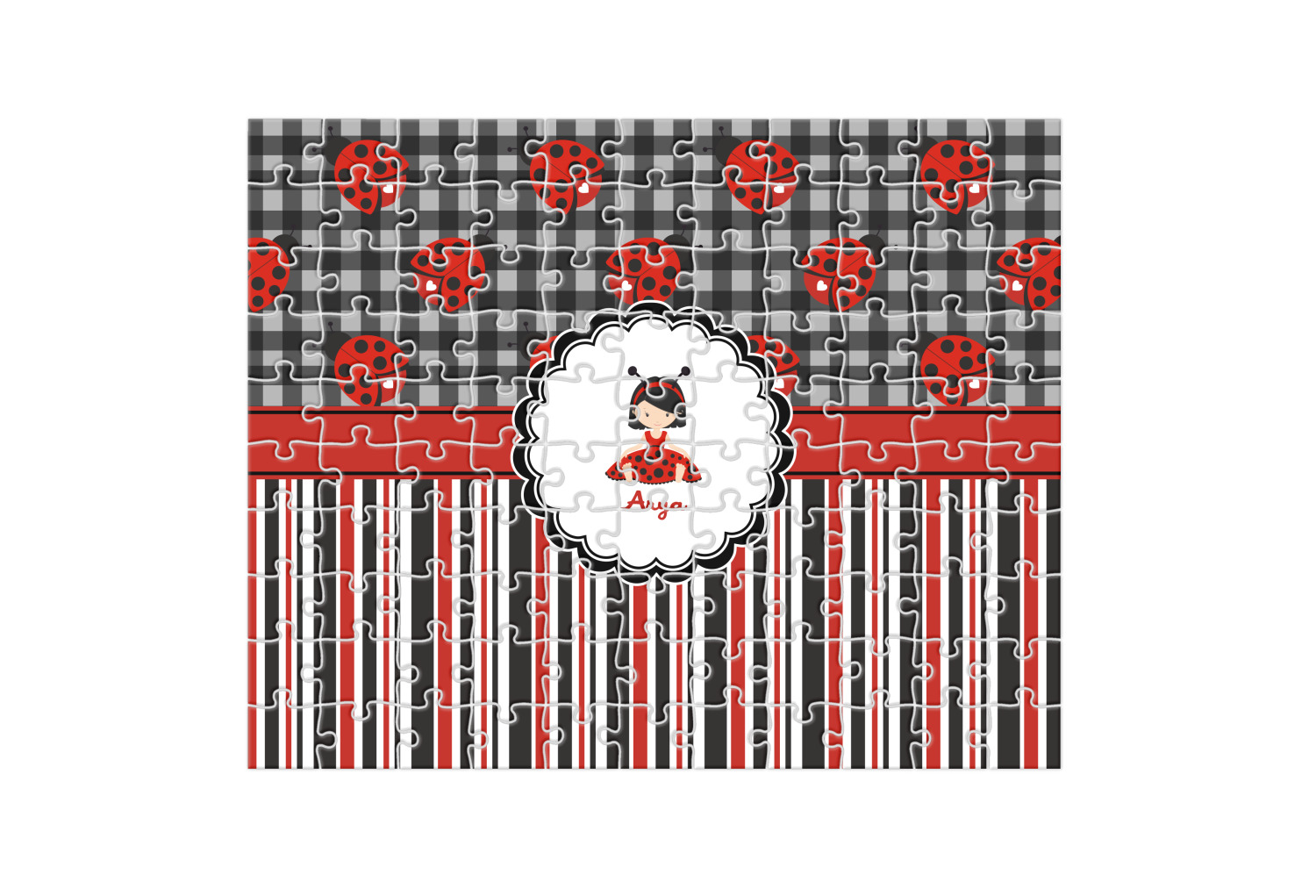 Depending on the look you are trying to achieve, you can add; a thematic pattern or background, with a photo in a frame and text or personalization to your puzzle. Basically if you can imagine it, you can design it!