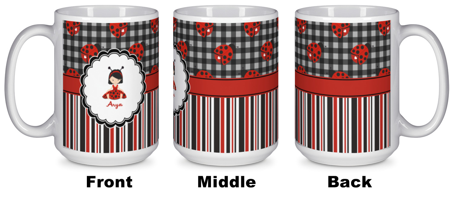 Our ceramic mugs have your design or photo printed along the surface with a gloss finish. The ceramic material of our mugs is dishwasher and microwave safe so you can reheat your tea or coffee if needed! We offer two different base colors with multiple mug sizes. The white ceramic mugs come in three size options - 11 oz., 15 oz., and 20 oz. Our black ceramic mugs are sold in either 11 oz. or 15 oz. sizes.