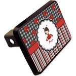 A wide band of red with an inset of black trim pulls the design together. A cute little girl dressed as a ladybug sits in the middle of a white scalloped circle label that is trimmed in double rows of black. Under the ladybug girl is ample room for custom personalization.
