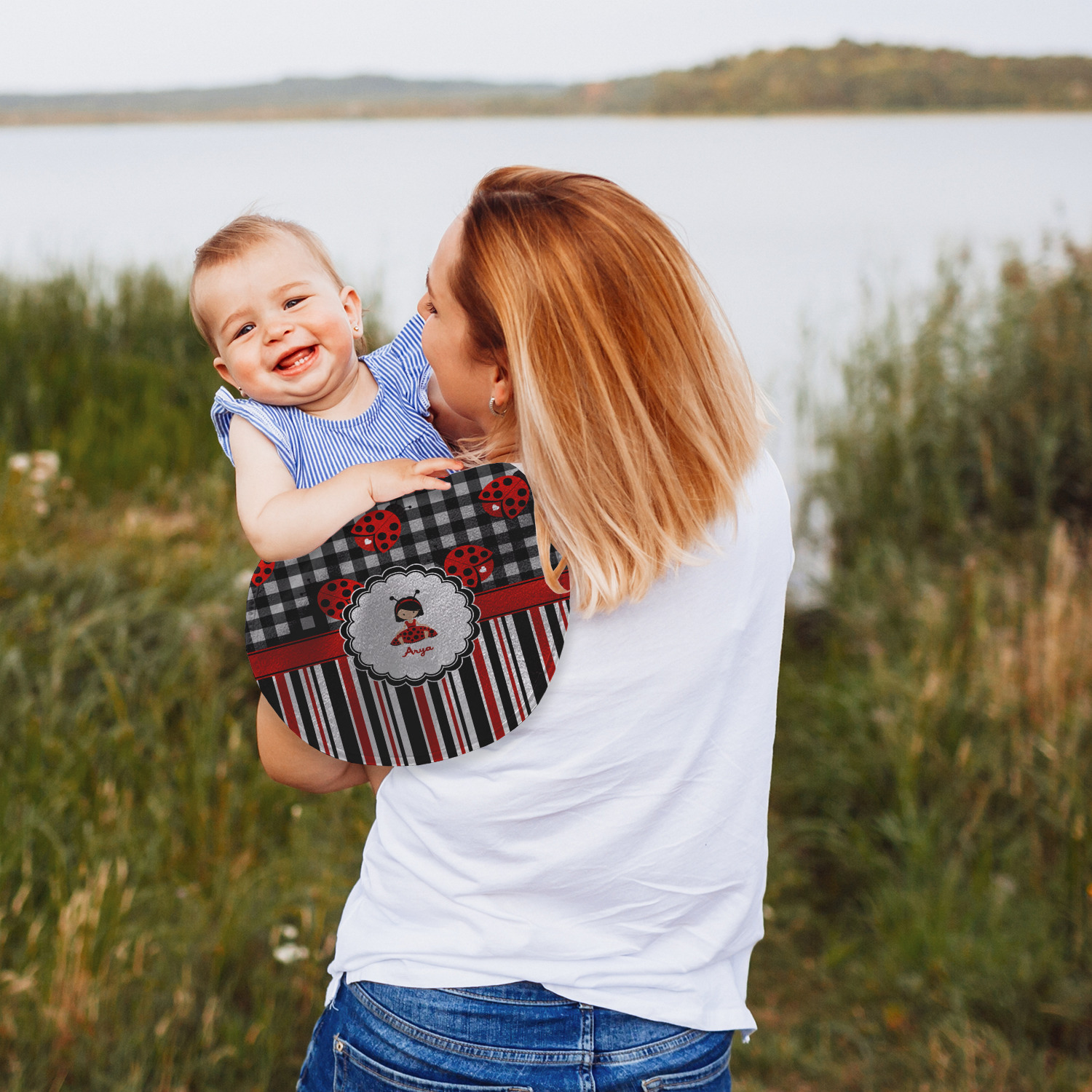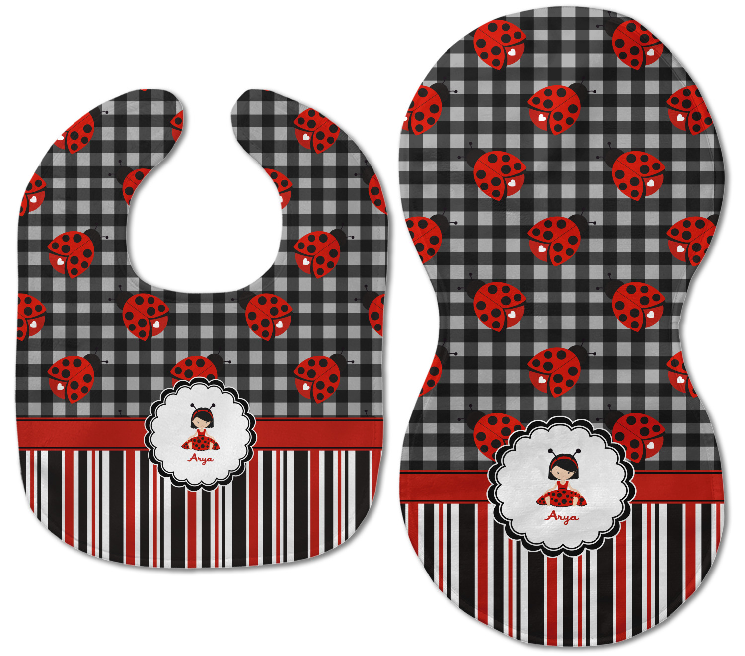 Both our baby bib and burp pad are made up of soft, microfiber velour with a cotton backing. The comfortable and plush material of our bib and burp set is perfect for both baby and parent. We print your design on the microfiber velour face fabric with baby safe ink on your customizable bib and burp cloth to ensure safety for the little one! Our drool bib also comes with a Velcro clasp for safe and easy wear while the burp cloth is a unique peanut shape that perfectly hugs over the shoulder.