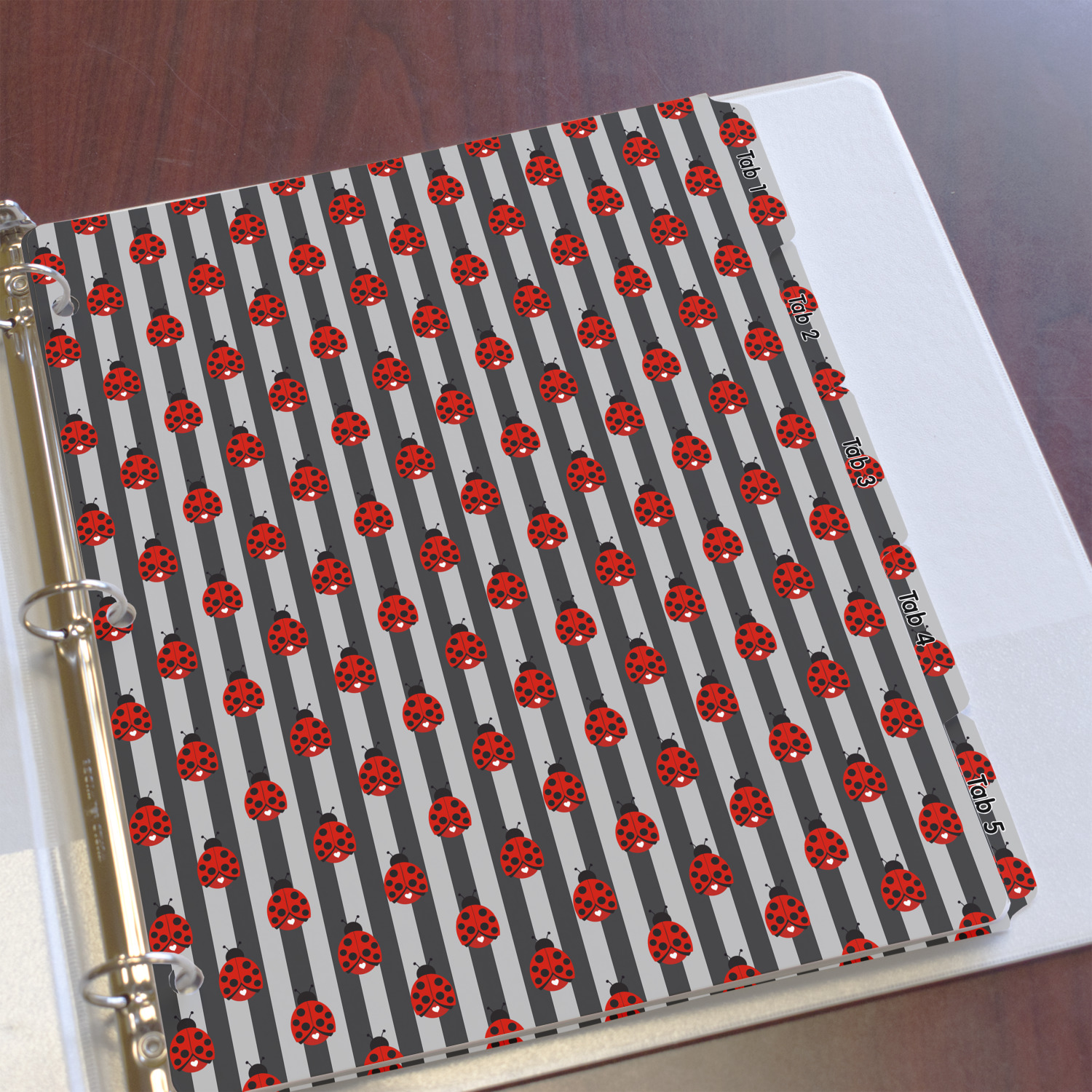 Made from a durable heavy weight card stock, these page dividers are printed on one side with your custom design. Customize the title on each tab as well as the background on each divider to make them unique to you. The possibilities are endless!