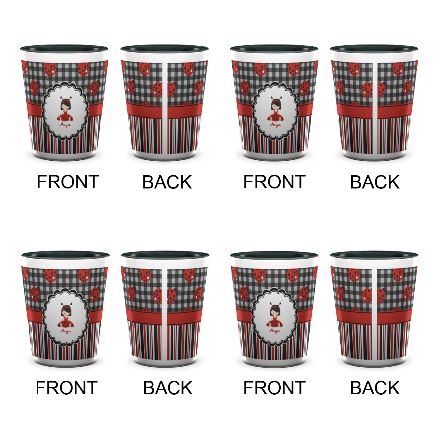 Made from ceramic these shot glasses are printed in full color with the design of your choice. These are a standard 1.5oz size and stand 2.25" tall. Available in a full white ceramic or a two-tone with a black color inside the shot glass. Buy a single or a set of 4, all of which can be designed separately to get you just what you want and need.