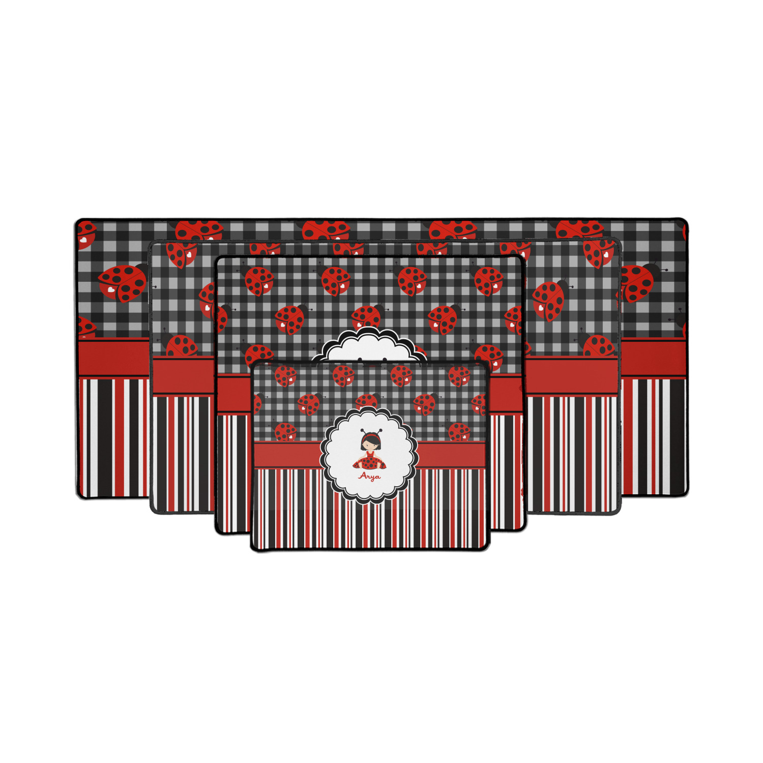 Ladybugs stand for luck so why not start your little one off surrounded by the symbol of luck. On the top part of the design our classic ladybugs each feature a heart and are set on a black gingham pattern. To stay with the classic black, red, and white theme a striped pattern has been added to the bottom to coordinate with the gingham pattern on top.