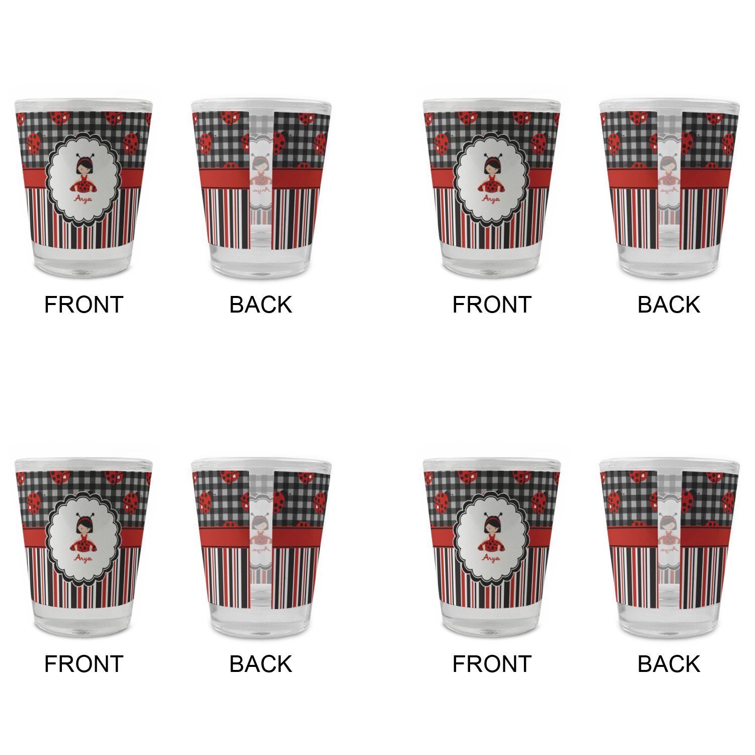 Made with frosted glass, these shot glasses are printed in full color with the design of your choice. They are a standard 1.5oz shot glass and are 2.4" tall. The print is wrapped around the shot glass in a full wrap and boldly displays your customization.
