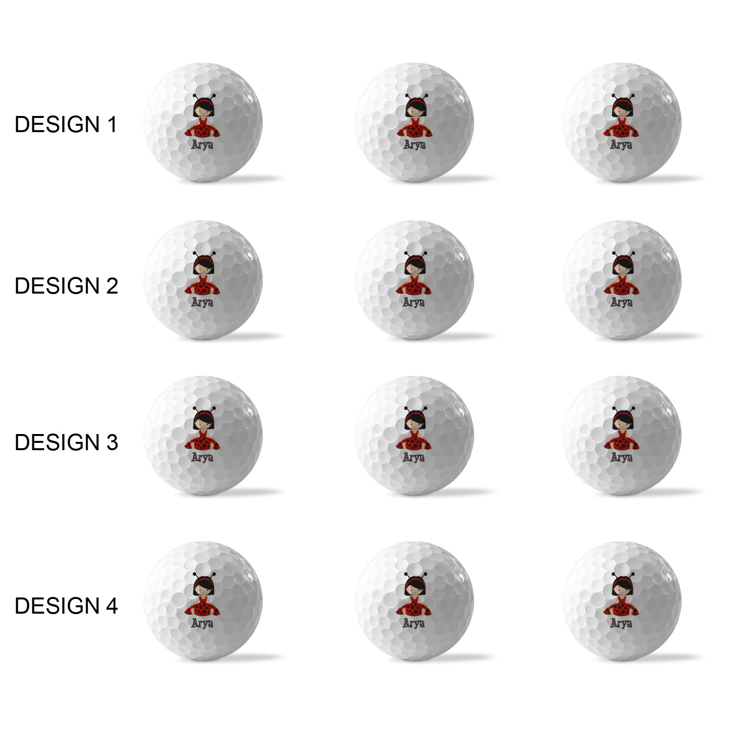 Printed in a 7/8" circle on each ball, you can customize these with our design studio or use your own designs. For a set of 3 you can design each one individually, for a set of 12 you will be able to use 4 unique designs and will receive 3 balls with each design.