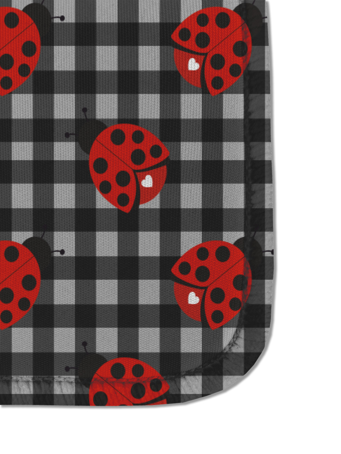 Ladybugs stand for luck so why not start your little one off surrounded by the symbol of luck. On the top part of the design our classic ladybugs each feature a heart and are set on a black gingham pattern. To stay with the classic black, red, and white theme a striped pattern has been added to the bottom to coordinate with the gingham pattern on top.