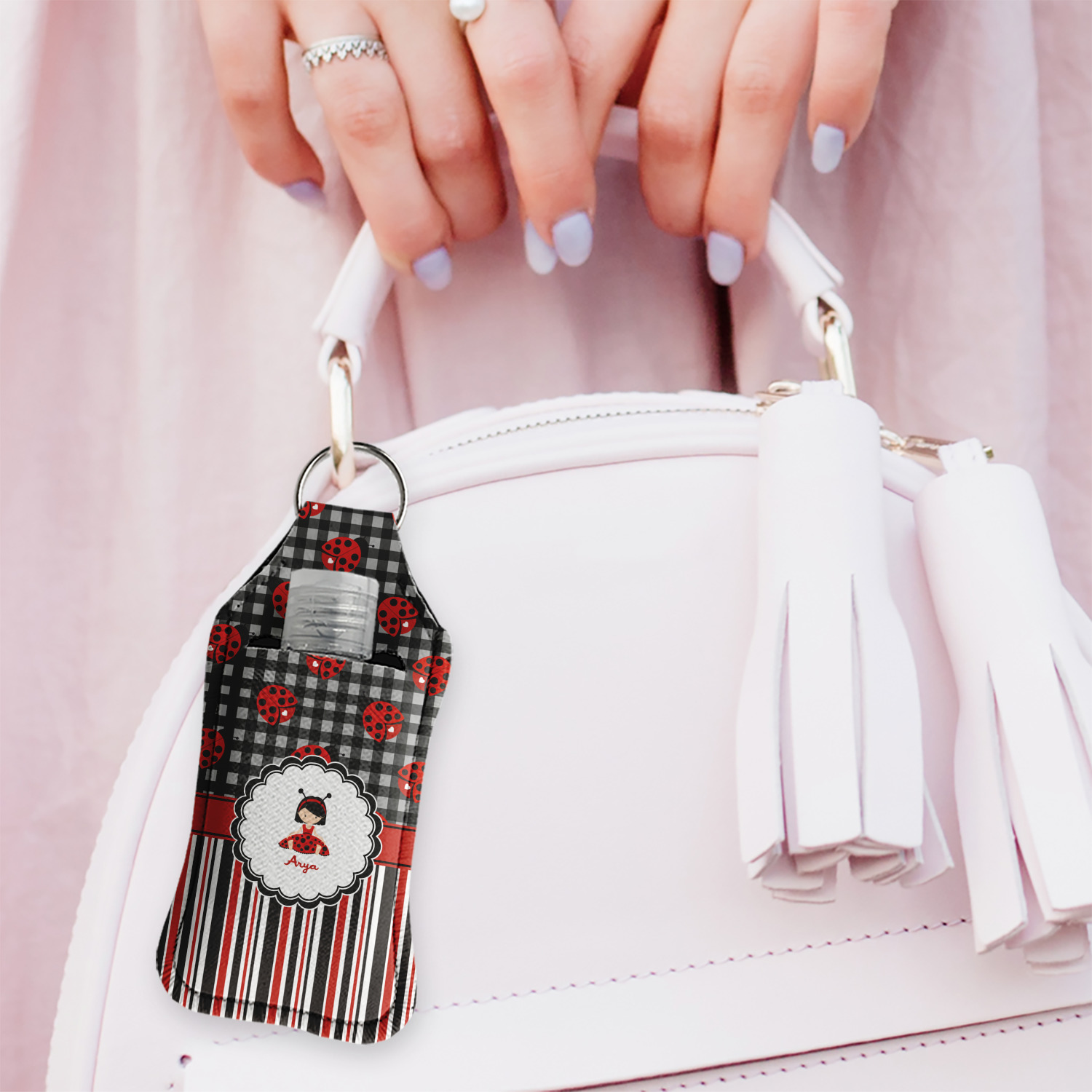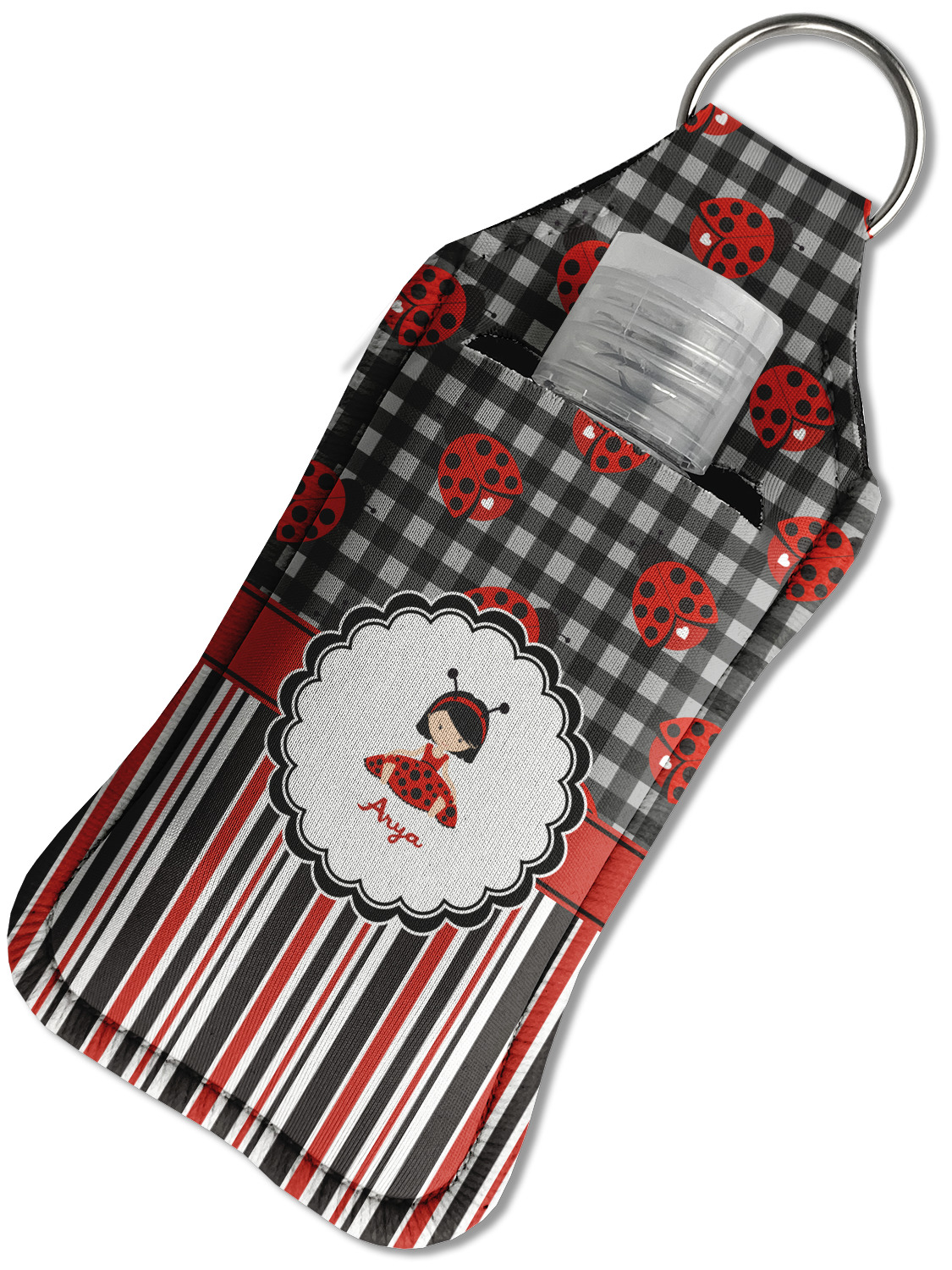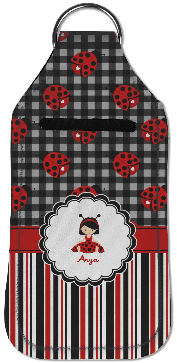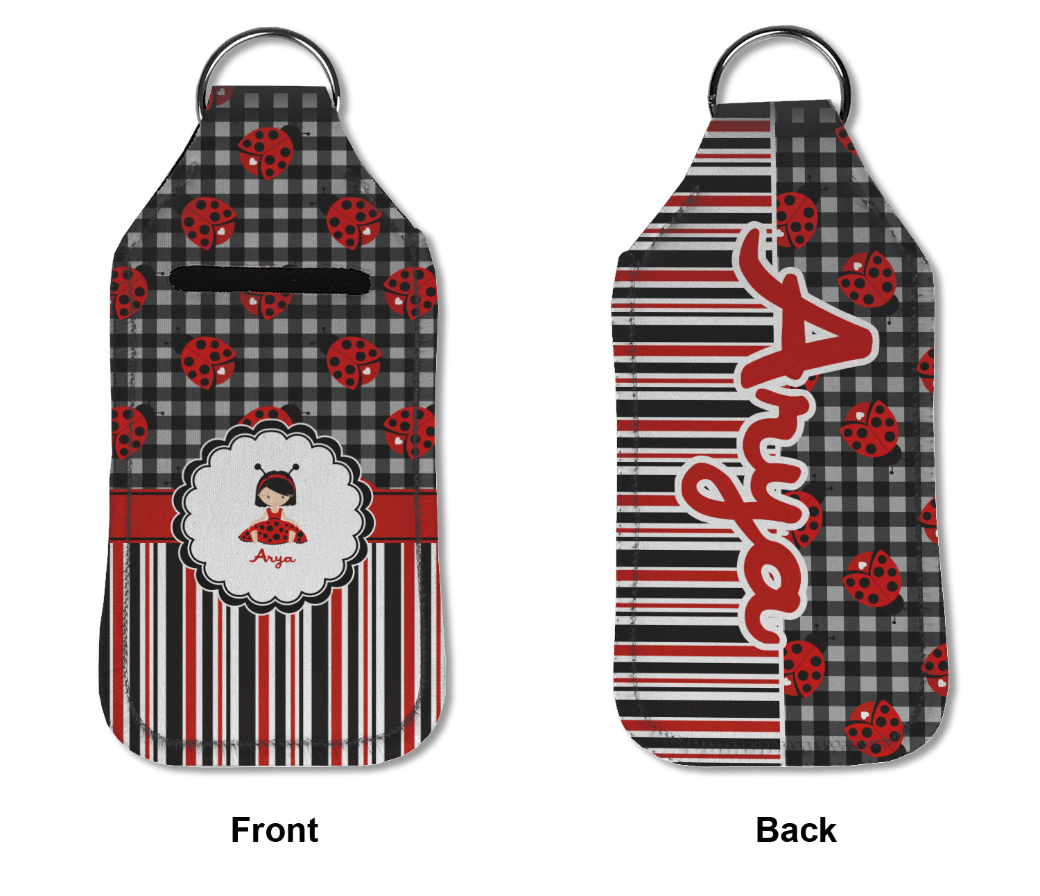 Each hand sanitizer holder comes with its own empty travel-sized, refillable hand sanitizer sure to fit snug in your customized sanitizer case! Our hand sanitizer cases are a durable, yet soft neoprene material sure to last any daily activities or travel agenda. Customize and personalize a hand sanitizer bottle holder with one of our two sizes - small (4.25" x 2.25") or large (5.5" x 2.5"). Each travel sanitizer holder comes with a keyring for attachment on bags, keys, or more!