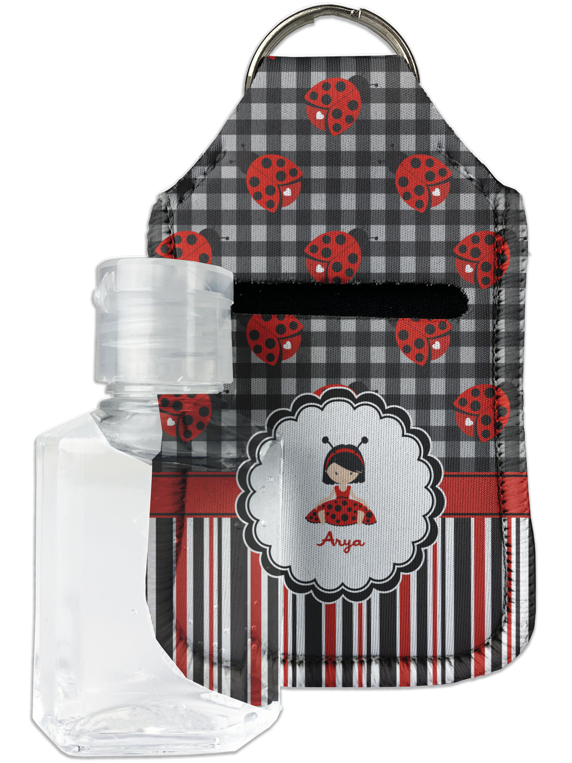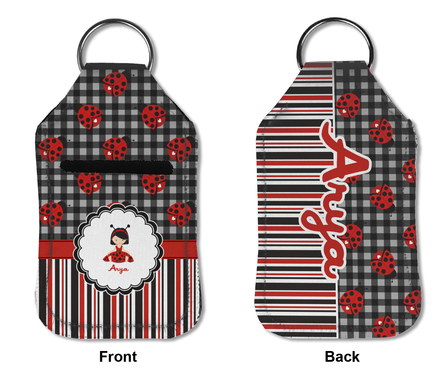 Each hand sanitizer holder comes with its own empty travel-sized, refillable hand sanitizer sure to fit snug in your customized sanitizer case! Our hand sanitizer cases are a durable, yet soft neoprene material sure to last any daily activities or travel agenda. Customize and personalize a hand sanitizer bottle holder with one of our two sizes - small (4.25" x 2.25") or large (5.5" x 2.5"). Each travel sanitizer holder comes with a keyring for attachment on bags, keys, or more!