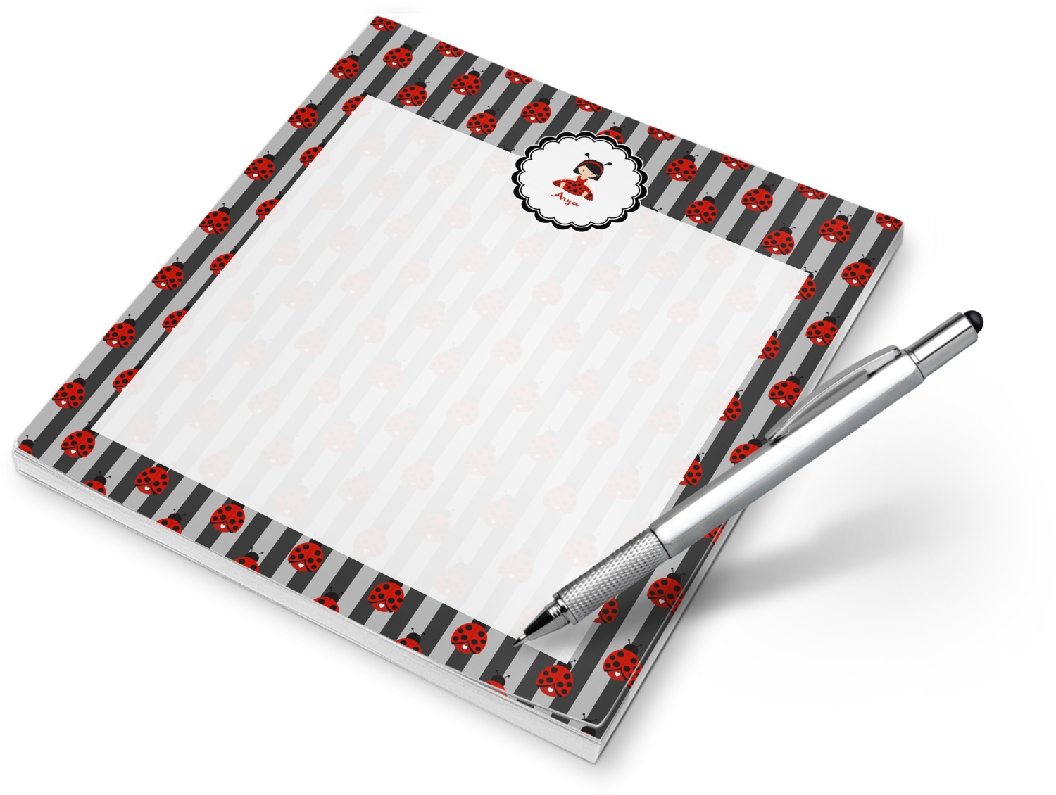 Your custom notepad features 50 sheets of thick, white paper, with your customization in the background and the edges. At approximately 6" x 5.5", these personalized memo pads are slightly larger than your average notepad. The individual notes tear easily from binding, which allows for quick, convenient, note-taking.