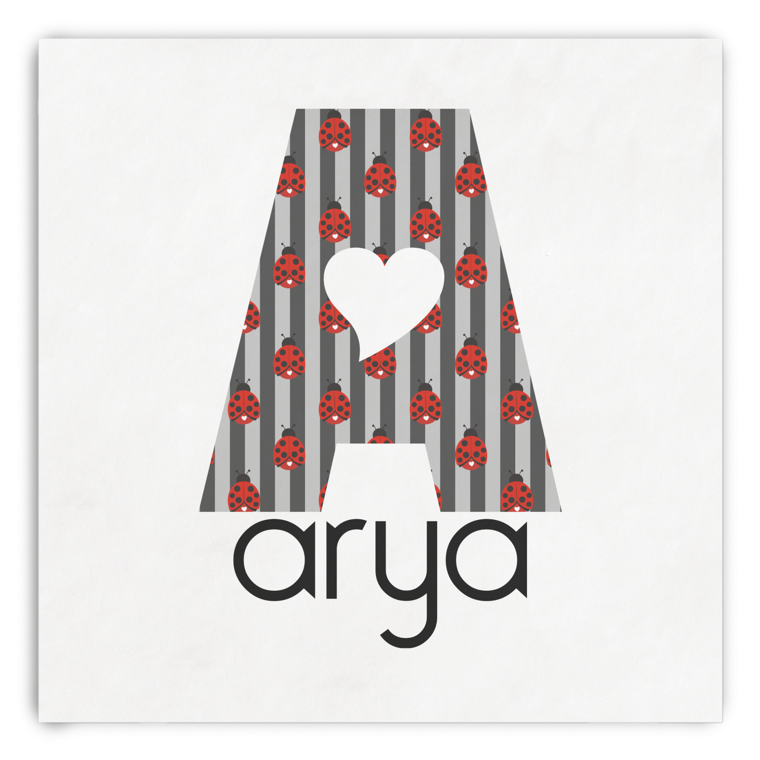 Ladybugs stand for luck so why not start your little one off surrounded by the symbol of luck. On the top part of the design our classic ladybugs each feature a heart and are set on a black gingham pattern. To stay with the classic black, red, and white theme a striped pattern has been added to the bottom to coordinate with the gingham pattern on top.