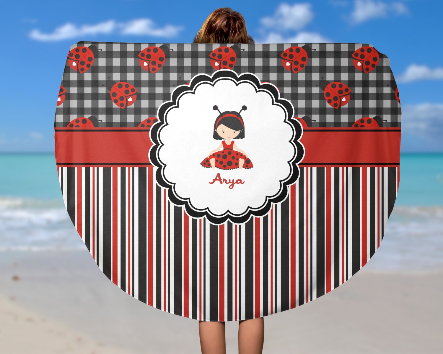 Think out of the box on your next beach, pool, or picnic day in style on your personalized round towel. This must have durable accessory is the perfect size for keeping you, and your possessions out of the sand. Sprawl out in the sun without getting your hands dirty, the unique round design allows for a full range of motion.