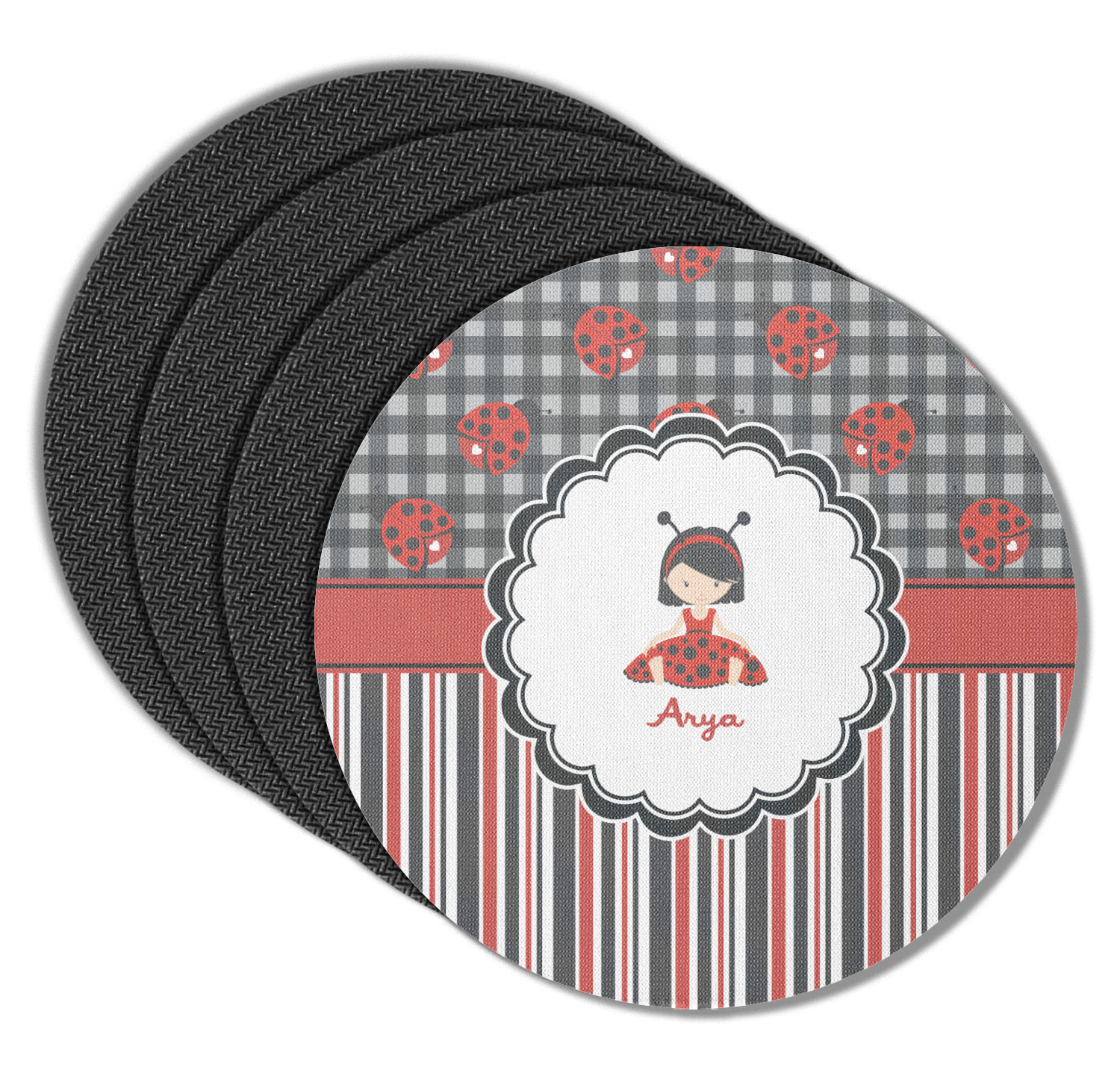 These drink coasters have a smooth, polyester top and a textured, rubber backing on its bottom. The non-slip rubber backing underneath works to keep any spills at bay. At 4 by 4 by 0.25 inches thick, these custom coasters are a suitable size for most drinkware. Your personalization is displayed atop the face of the cup coaster. We sell these rubber coasters in two different shapes: square and round. You can buy each shape as singulars or as a set of 4.