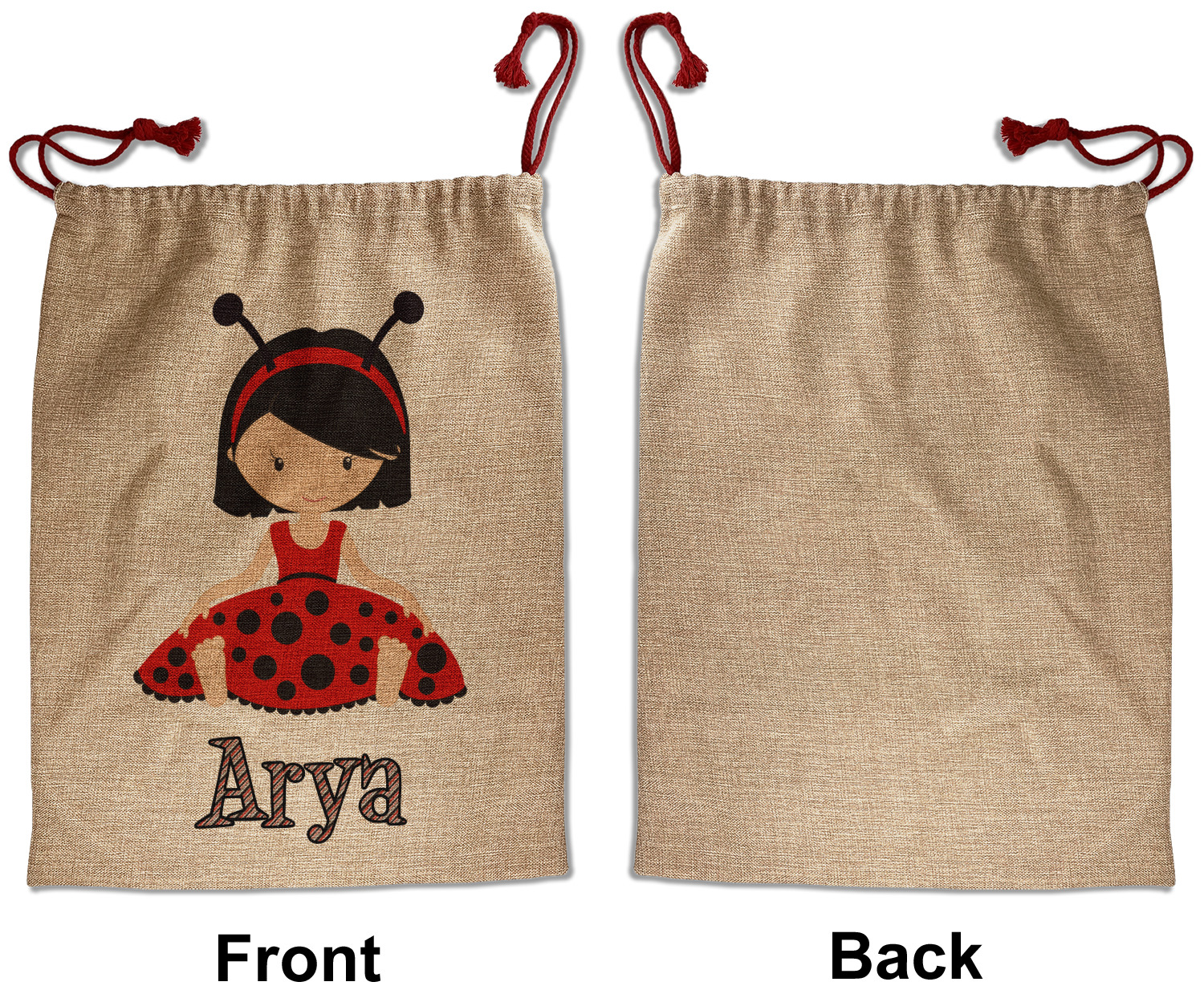 Our Santa sacks print your design on the burlap material giving it a nice rustic, natural design! The burlap material is also machine washable and wrinkle-free, so feel free to fold and store out Santa bags until the next time you need it! Secure your gifts with our red accent drawstring ties at the top of the sack so the mystery of your gift stays a surprise until Christmas day. We offer two types of printing- one side partial print or double-sided partial printing. Design and personalize your own Santa sack in time for the holidays!