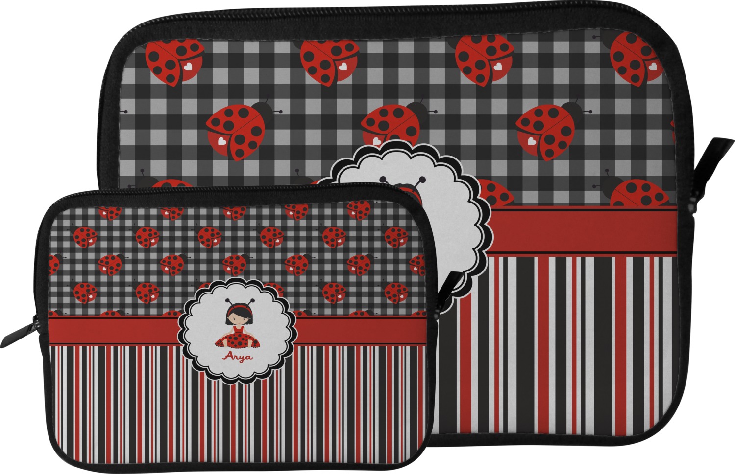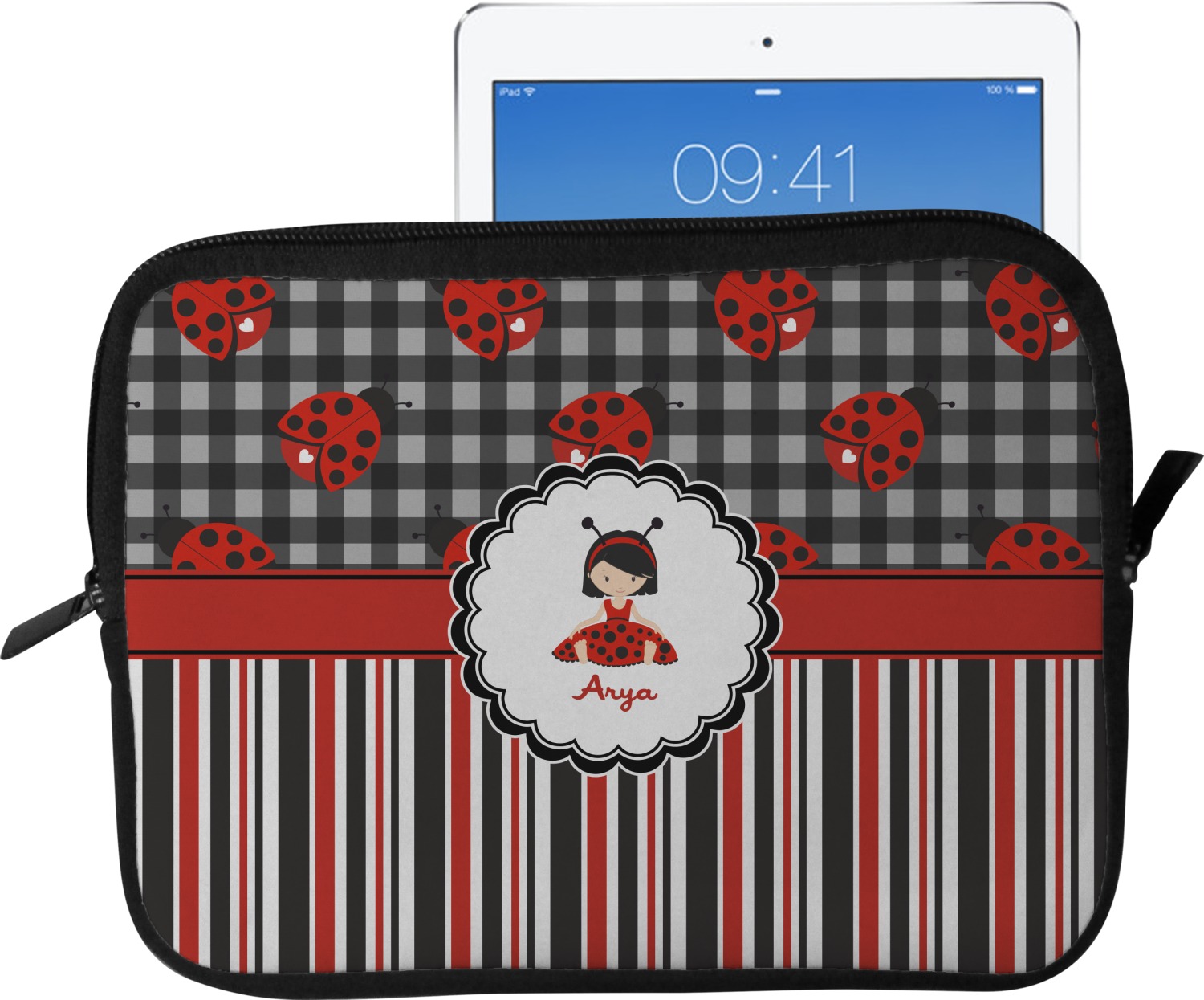 These tablet covers are fabricated from a water-resistant neoprene, and feature a zipper at its top for easy access to your device. The supple, cushioned nature of the neoprene will protect your tablet from the mishaps of daily life. Your personalized design is printed on the front of the I-Pad case, while the remaining sides are black in color. We provide this case in two sizes, in order to best accommodate your device. Our smaller size can fit a tablet with an 11 inch screen, while our larger sleeve is better suited for devices with approximately a 13 inch screen.