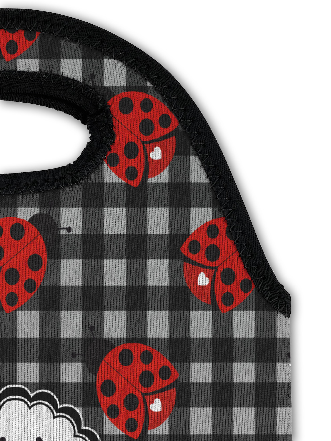Ladybugs stand for luck so why not start your little one off surrounded by the symbol of luck. On the top part of the design our classic ladybugs each feature a heart and are set on a black gingham pattern. To stay with the classic black, red, and white theme a striped pattern has been added to the bottom to coordinate with the gingham pattern on top.