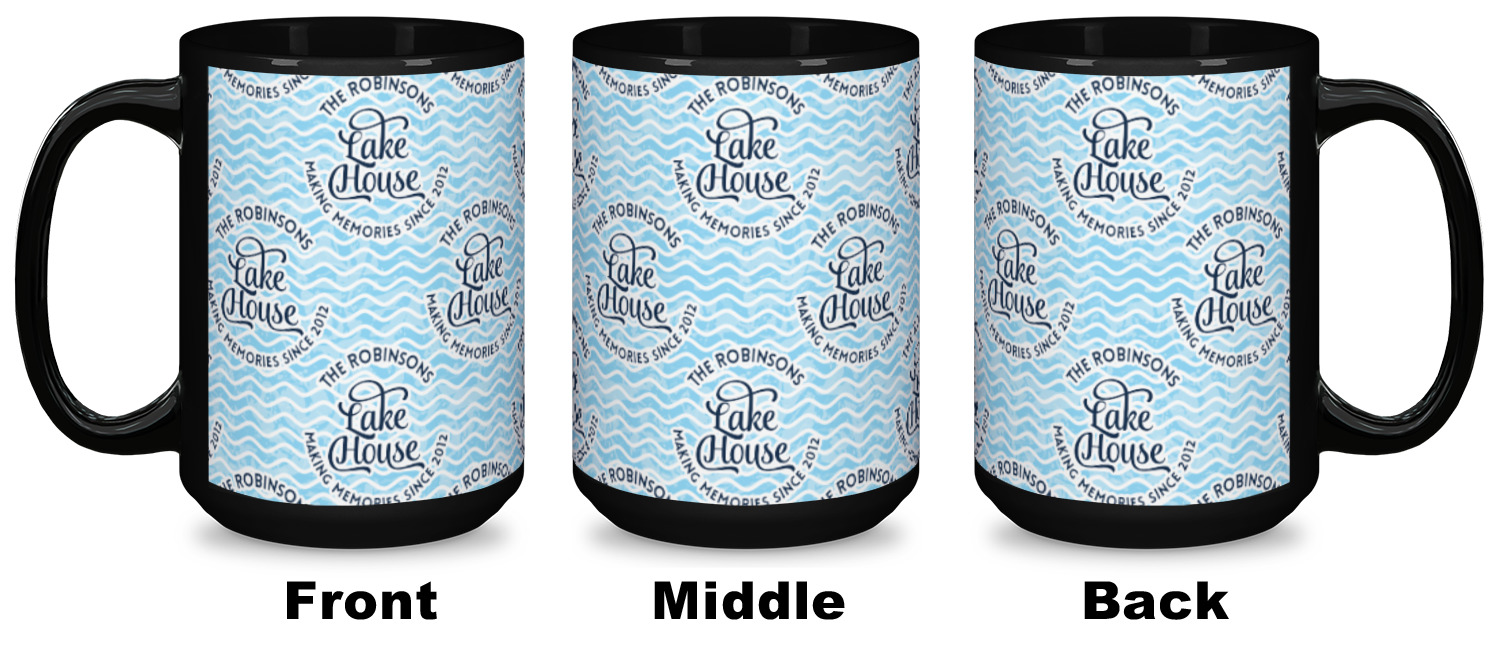 This Lake House Design is serene and calm. We create a "personalized" pattern for this design. The pattern consists of serene blue waves and a round badge that has the words Lake House in the middle. The top text & bottom texts can be customized; we chose to use the family name for the top and instead of using established in 2012, we chose to use the words "Making Memories Since 2012".
