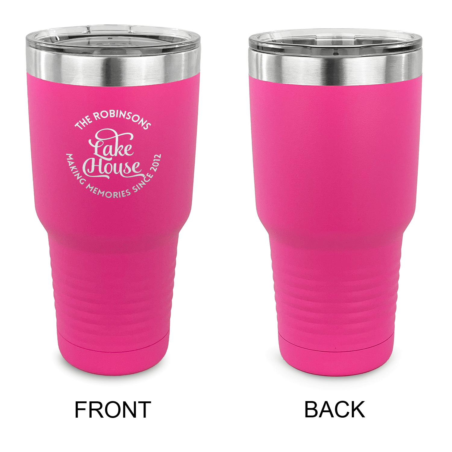 With the 5 colors - Black, Navy, Red, Pink and Coral, you are sure to find a cup to fit your personality. You can chose to engrave on the front or the front and back of the cup. Use our design studio to design your own cup and we laser engrave it for you.