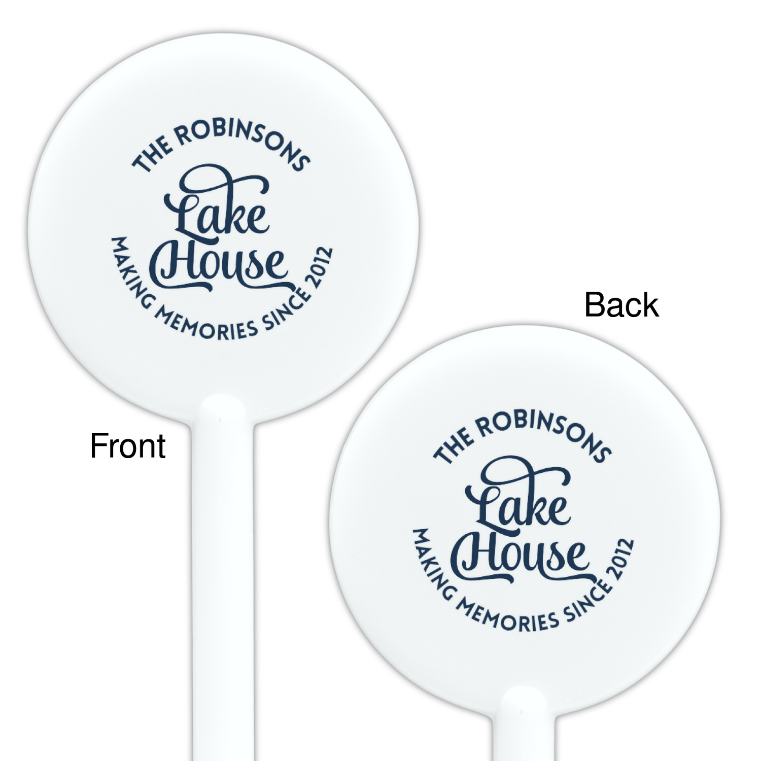 Coastal / Beach Style Designs for 5.5" Round Plastic Stir Sticks - White - Double-Sided