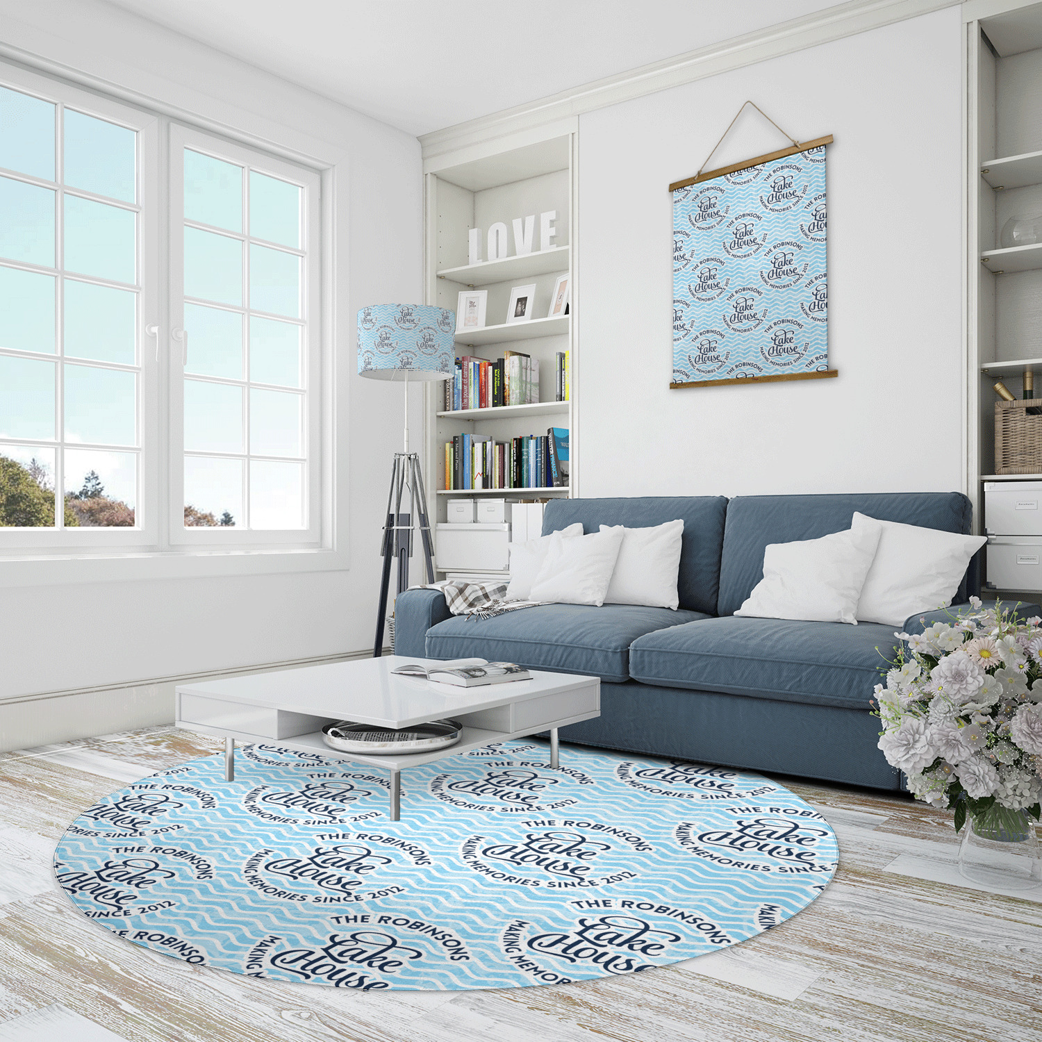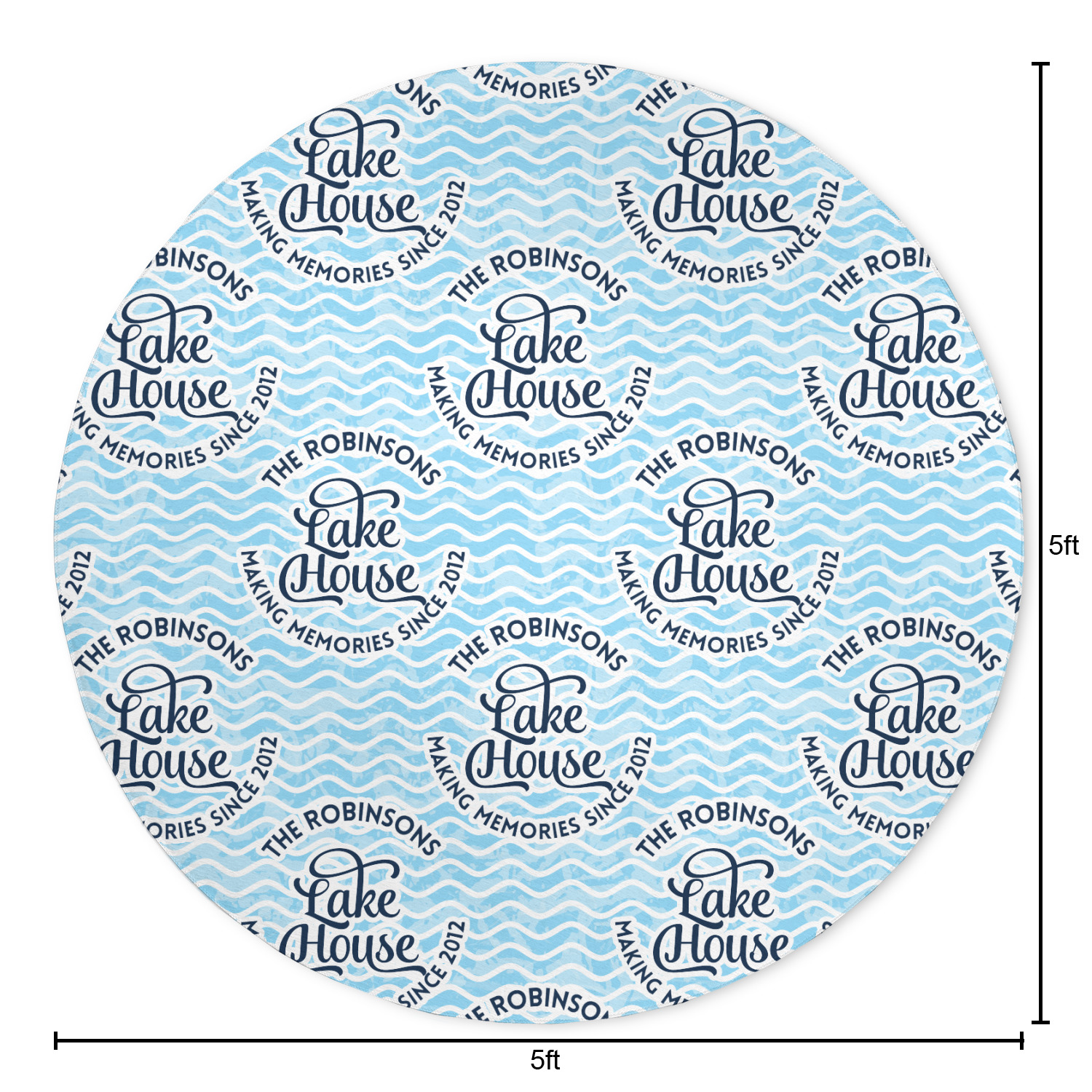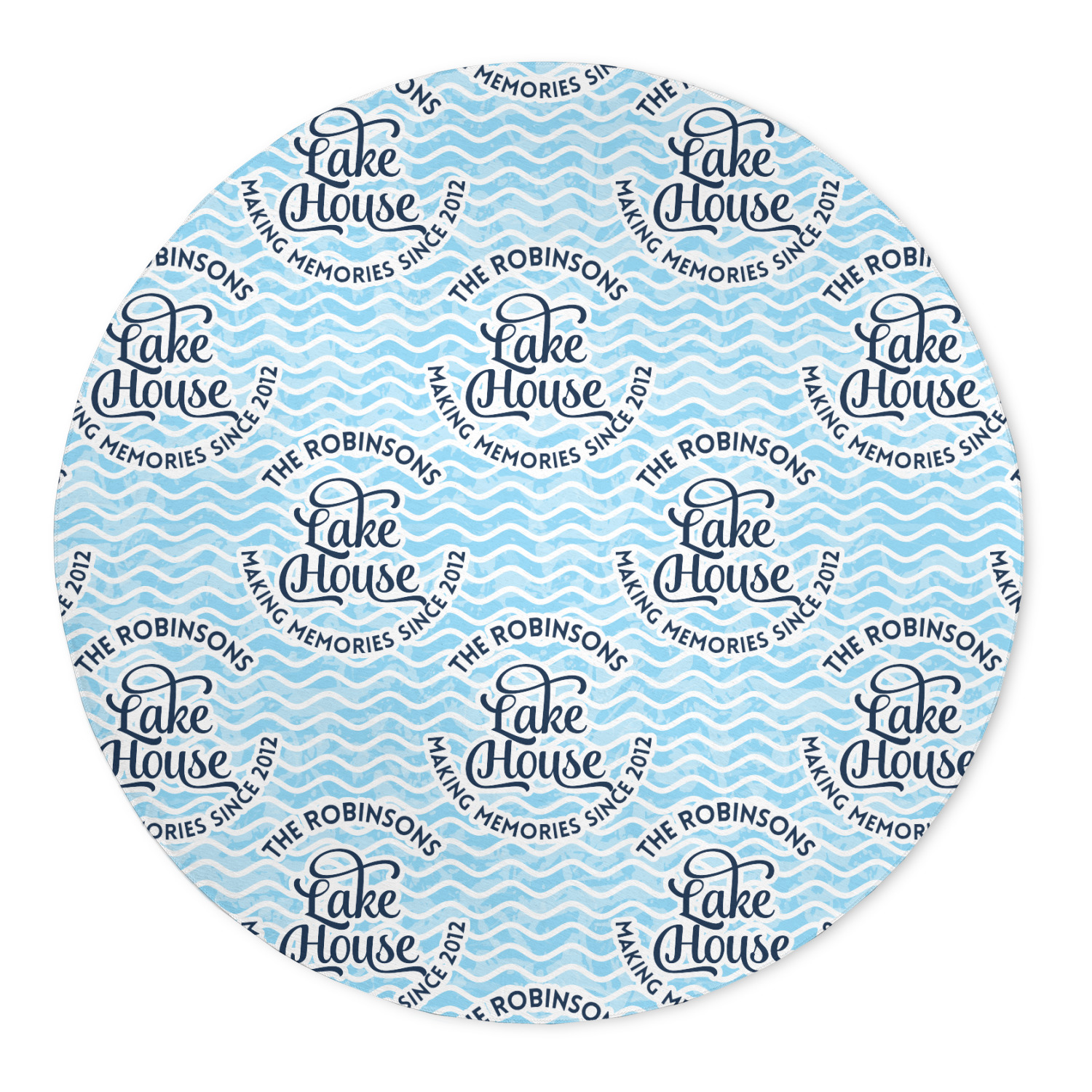 This Lake House Design is serene and calm. We create a "personalized" pattern for this design. The pattern consists of serene blue waves and a round badge that has the words Lake House in the middle. The top text & bottom texts can be customized; we chose to use the family name for the top and instead of using established in 2012, we chose to use the words "Making Memories Since 2012".