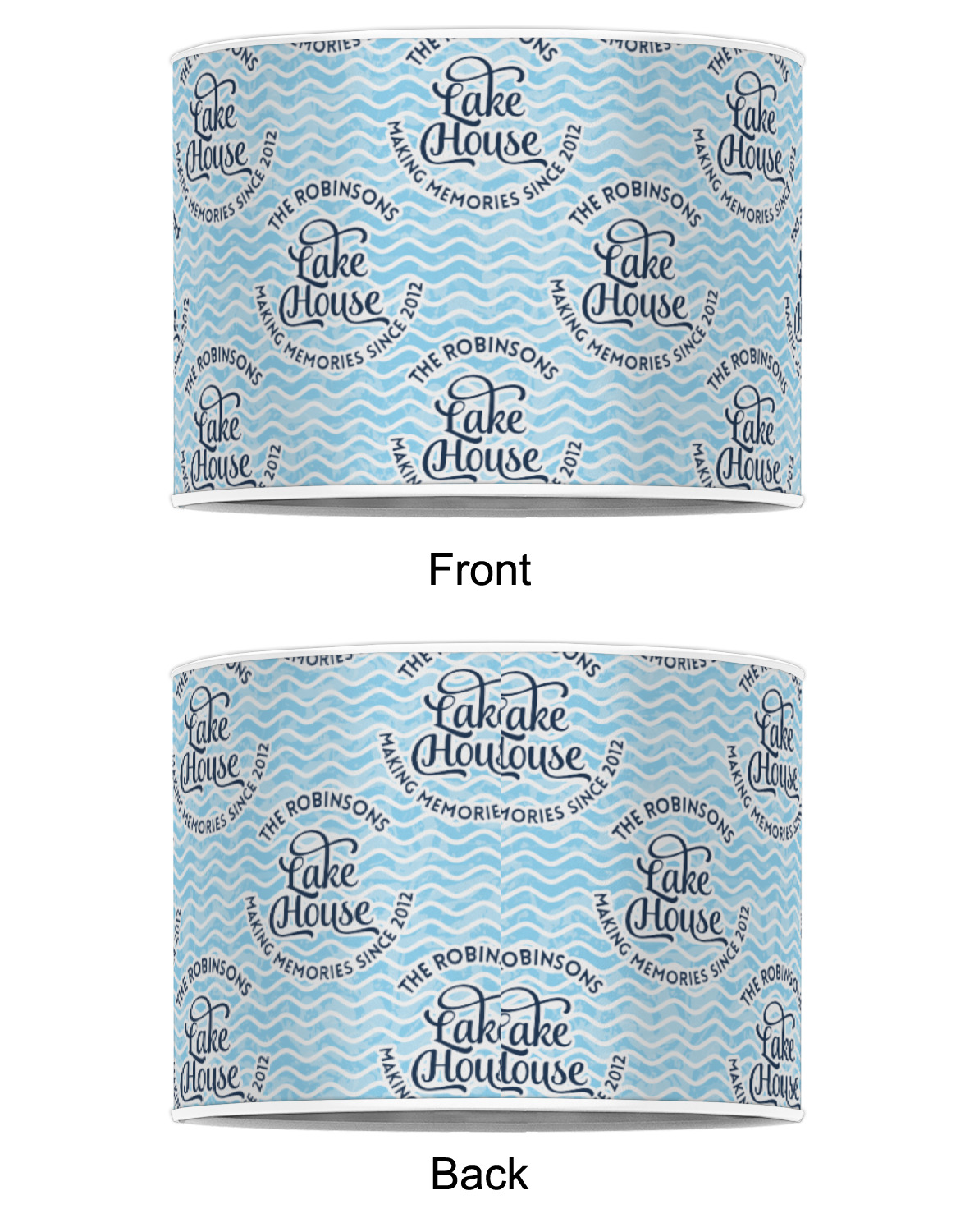 This Lake House Design is serene and calm. We create a "personalized" pattern for this design. The pattern consists of serene blue waves and a round badge that has the words Lake House in the middle. The top text & bottom texts can be customized; we chose to use the family name for the top and instead of using established in 2012, we chose to use the words "Making Memories Since 2012".