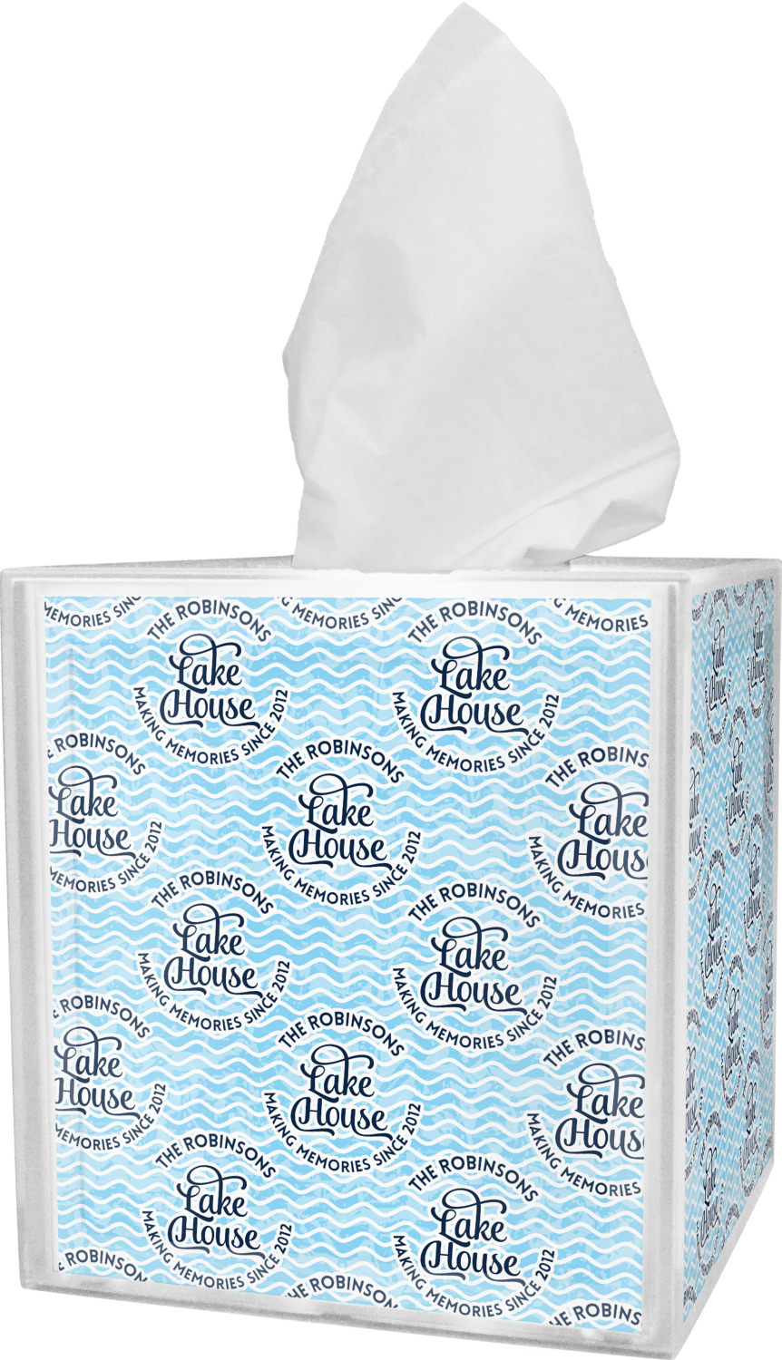 These tissue holders are built from durable acrylic and display your unique personalization on fine-quality vinyl inserts placed within the four sides and top. The box features two pieces, allowing you to easily switch out tissue boxes. On the sides, you'll find ridges that ensure the top and base fit securely in place. The bottom of these tissue box holders has four, rubber, non-slip pads to prevent the box from scuffing any surface you decide to display it on. Each box can fit a standard 5-by-5-inch box of tissues.