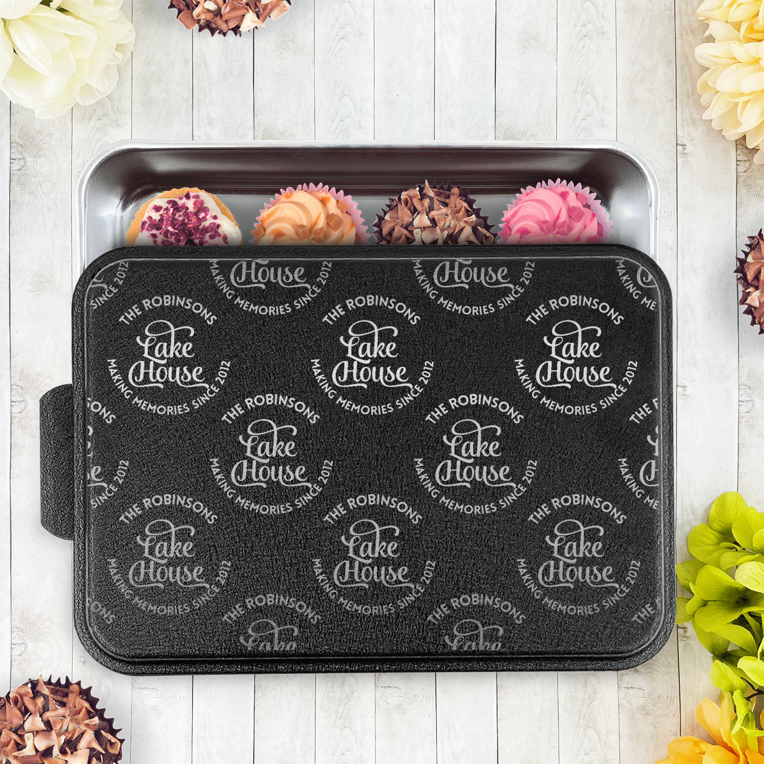 With the lid laser etched with the design of your choice these get the fully customized touch unique to you. The possibilities are endless when you go to design your own cake pan lid. With our design library you can make the design of your dreams come true.