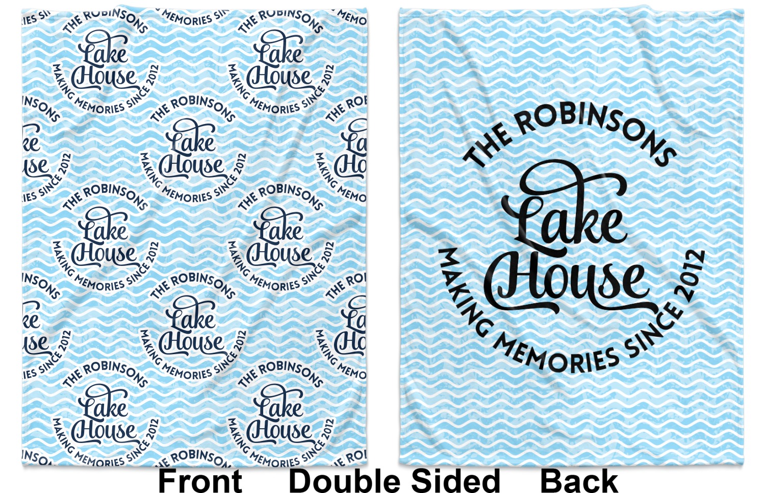 This Lake House Design is serene and calm. We create a "personalized" pattern for this design. The pattern consists of serene blue waves and a round badge that has the words Lake House in the middle. The top text & bottom texts can be customized; we chose to use the family name for the top and instead of using established in 2012, we chose to use the words "Making Memories Since 2012".