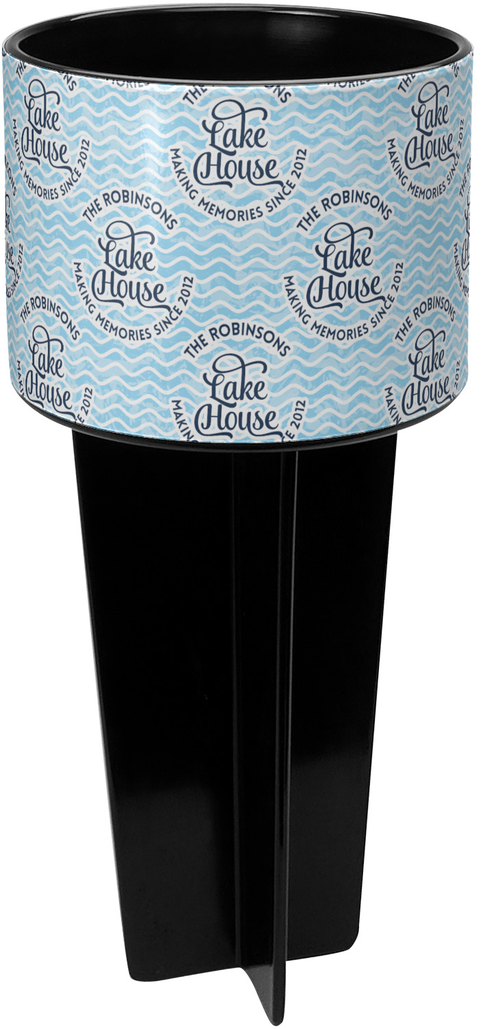 This cup holder has a large stake at its bottom that anchors it to the sand or ground below, while the cup holder rests above the stake. The entire drink holder is made of durable plastic and displays your customization around the cup holder portion. We sell these personalized beach spikers in two different colors: black and white.