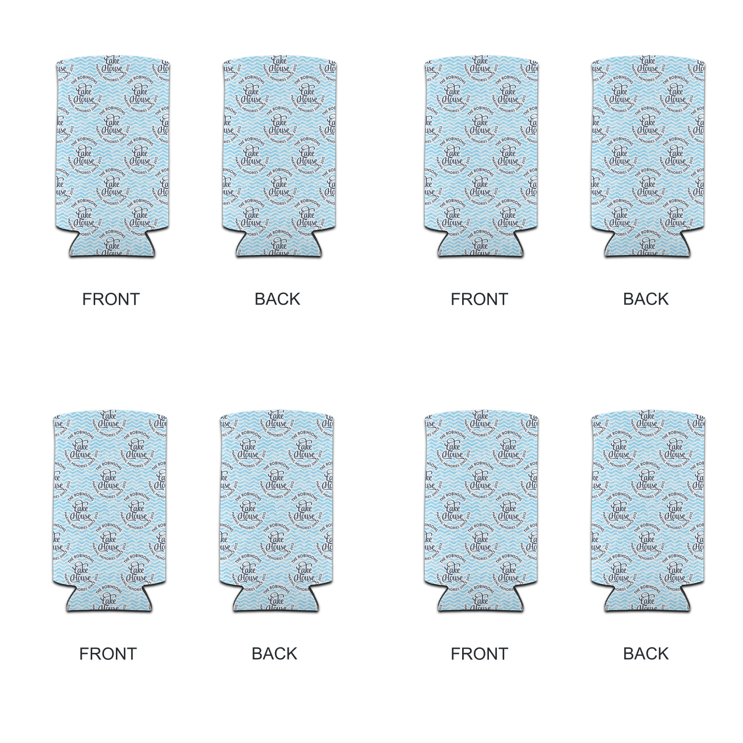 This Lake House Design is serene and calm. We create a "personalized" pattern for this design. The pattern consists of serene blue waves and a round badge that has the words Lake House in the middle. The top text & bottom texts can be customized; we chose to use the family name for the top and instead of using established in 2012, we chose to use the words "Making Memories Since 2012".