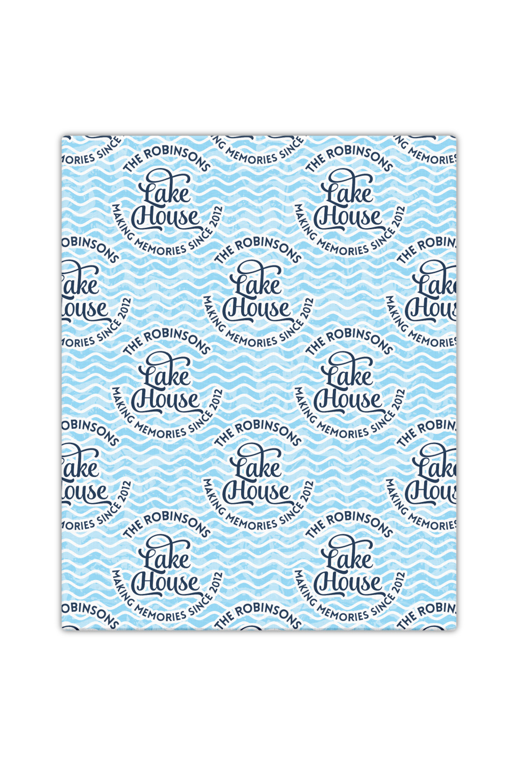 This Lake House Design is serene and calm. We create a "personalized" pattern for this design. The pattern consists of serene blue waves and a round badge that has the words Lake House in the middle. The top text & bottom texts can be customized; we chose to use the family name for the top and instead of using established in 2012, we chose to use the words "Making Memories Since 2012".
