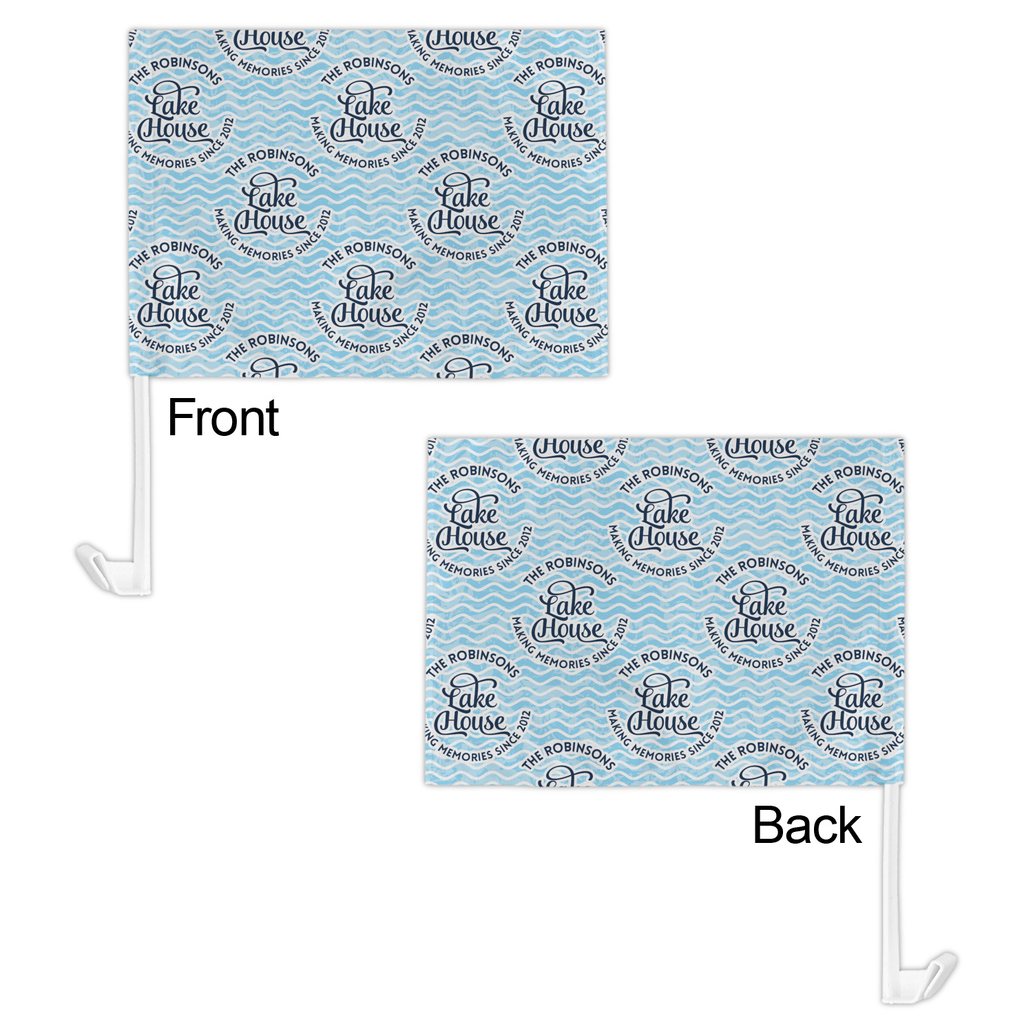Our personalized flags are made from a durable, yet lightweight cloth that will proudly bear your logo or design of choice, while withstanding the outside elements. We have two size options - 8" x 11" and 11" x 15". Both come with a flag pole which includes a clip that secures the pole to the side window, whether it is rolled up or down. The flags are printed on both sides to display your design from all directions.