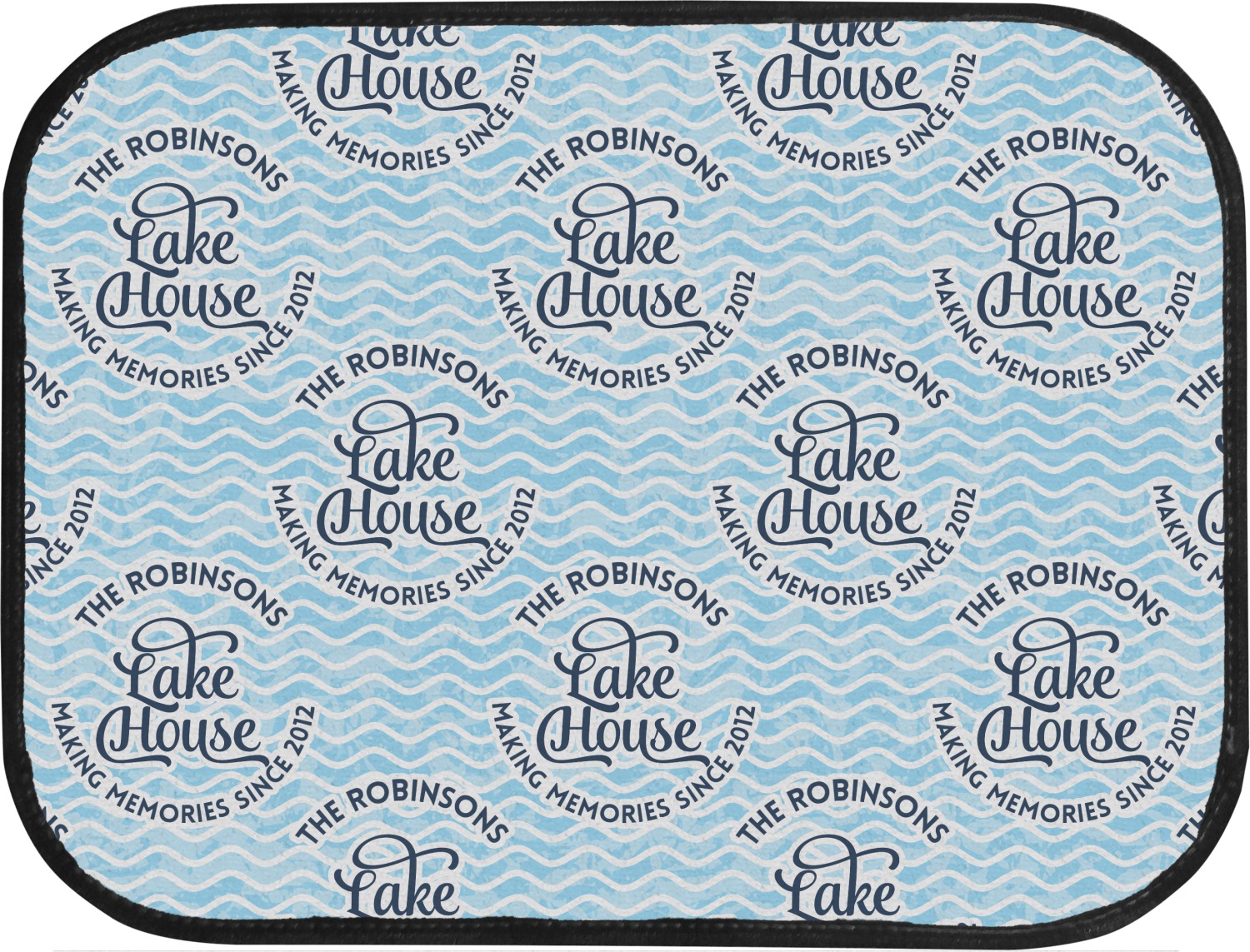 This Lake House Design is serene and calm. We create a "personalized" pattern for this design. The pattern consists of serene blue waves and a round badge that has the words Lake House in the middle. The top text & bottom texts can be customized; we chose to use the family name for the top and instead of using established in 2012, we chose to use the words "Making Memories Since 2012".