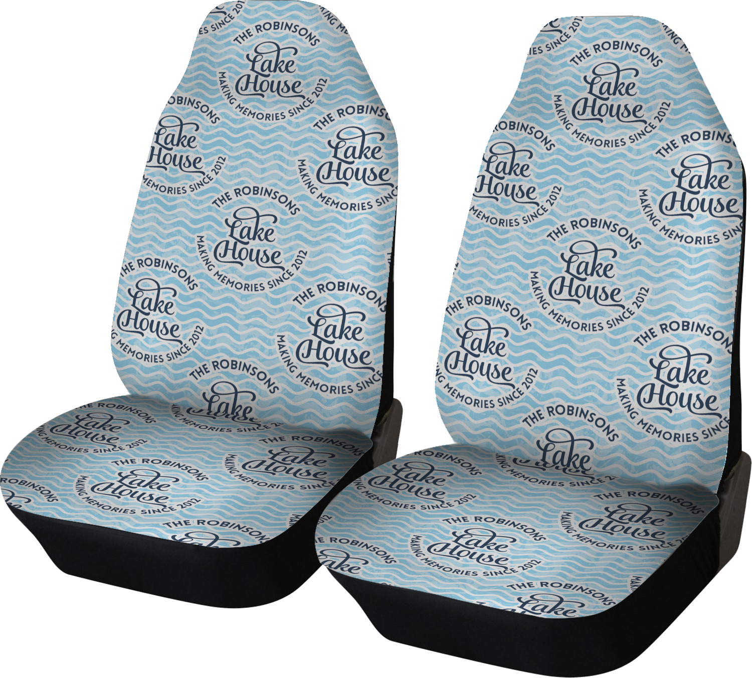 This Lake House Design is serene and calm. We create a "personalized" pattern for this design. The pattern consists of serene blue waves and a round badge that has the words Lake House in the middle. The top text & bottom texts can be customized; we chose to use the family name for the top and instead of using established in 2012, we chose to use the words "Making Memories Since 2012".