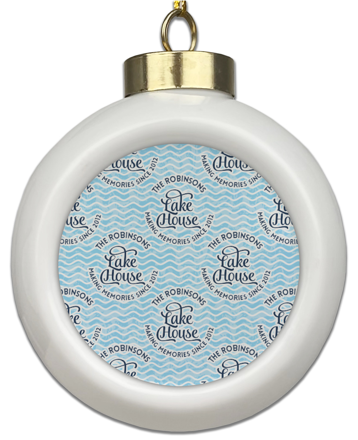 This Lake House Design is serene and calm. We create a "personalized" pattern for this design. The pattern consists of serene blue waves and a round badge that has the words Lake House in the middle. The top text & bottom texts can be customized; we chose to use the family name for the top and instead of using established in 2012, we chose to use the words "Making Memories Since 2012".