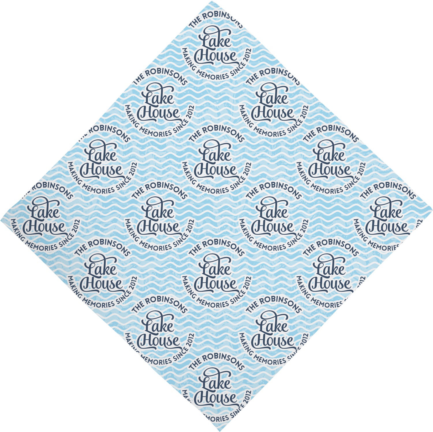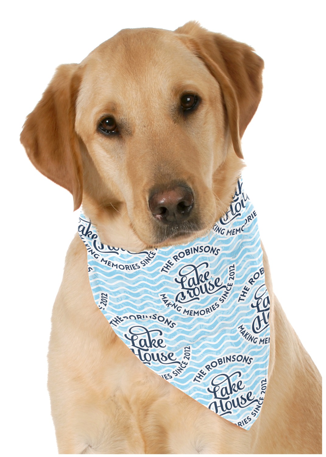 This beautiful pet bandana really is the perfect accessory. It is made from a silky feeling polyester and measures at approximately 23" x 23". Your personalization will be printed on a diagonal, so that you are able to read the personalization when folded into a triangle. This bandana fits best on large dogs, but can be folded smaller if there is no personalized text to fit smaller pets.