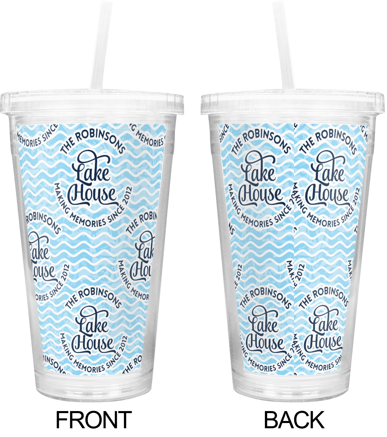 These tumblers are customized for you with a printed insert between the two walls of the cup. The lid screws on tight and helps to keep your drink cold.