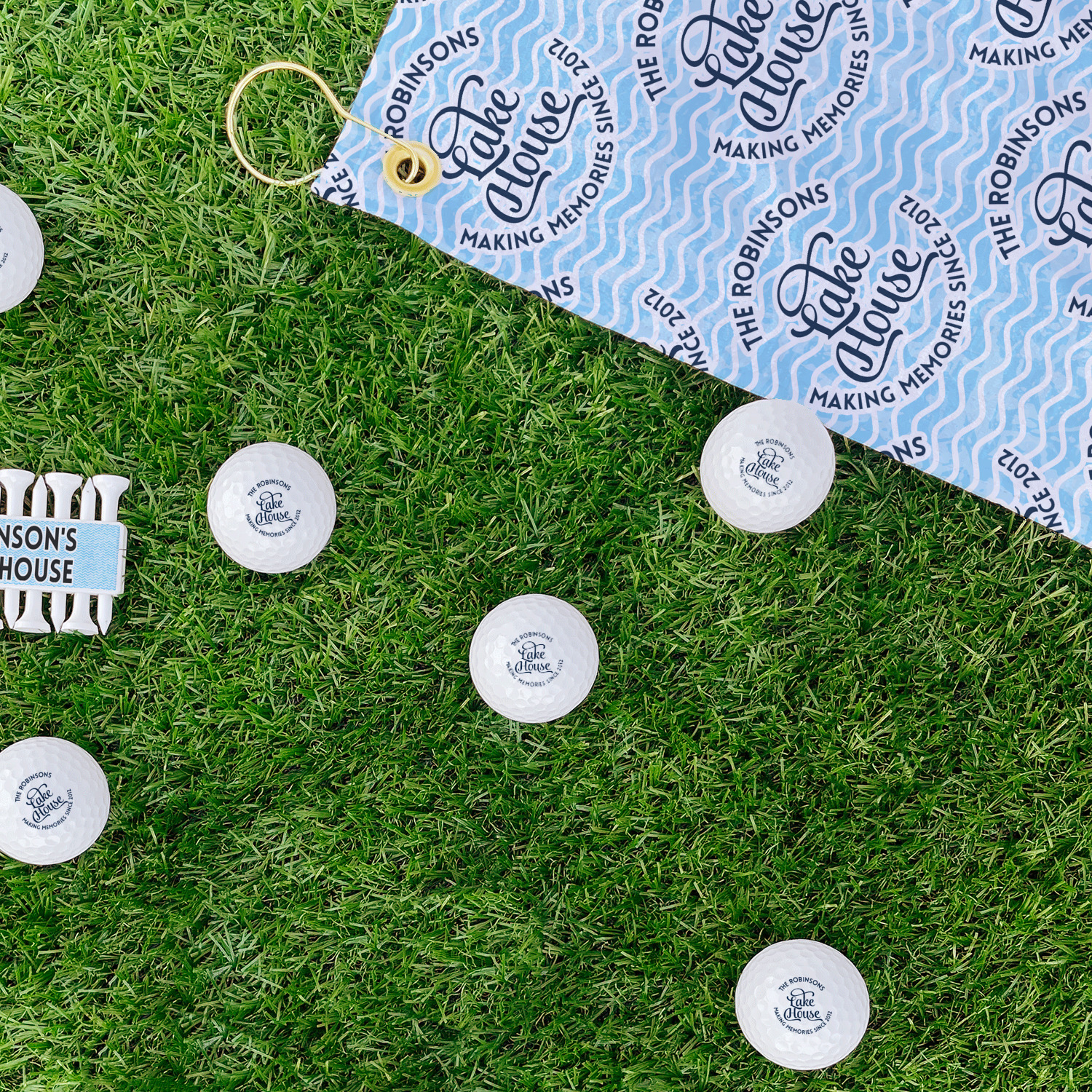 This Lake House Design is serene and calm. We create a "personalized" pattern for this design. The pattern consists of serene blue waves and a round badge that has the words Lake House in the middle. The top text & bottom texts can be customized; we chose to use the family name for the top and instead of using established in 2012, we chose to use the words "Making Memories Since 2012".