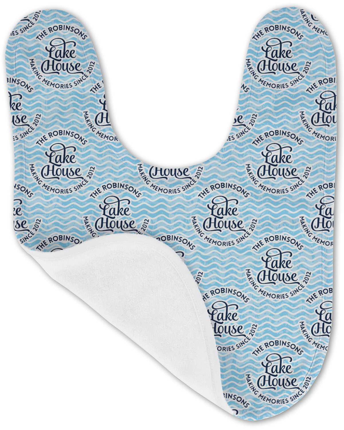 This Lake House Design is serene and calm. We create a "personalized" pattern for this design. The pattern consists of serene blue waves and a round badge that has the words Lake House in the middle. The top text & bottom texts can be customized; we chose to use the family name for the top and instead of using established in 2012, we chose to use the words "Making Memories Since 2012".