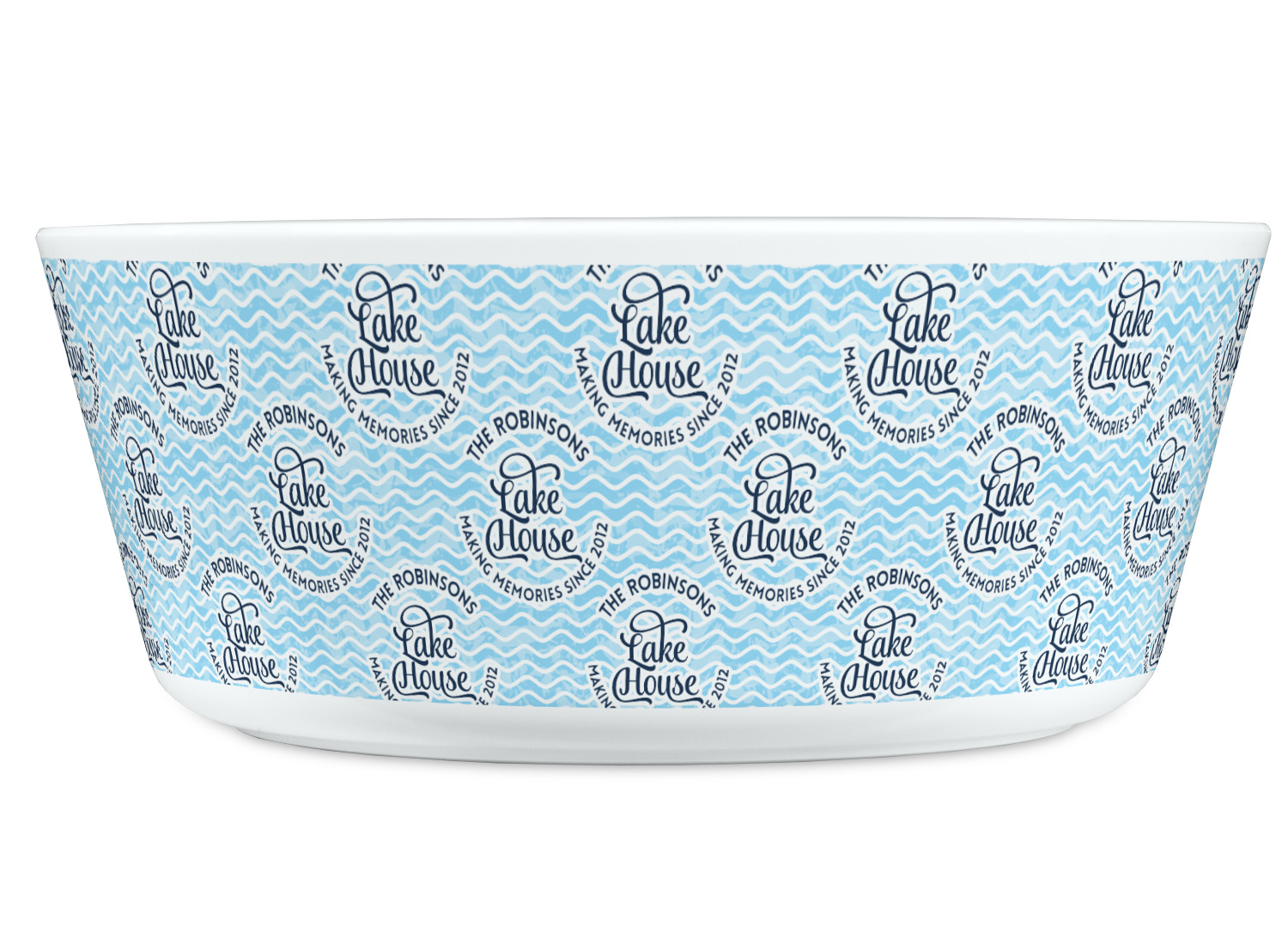 This Lake House Design is serene and calm. We create a "personalized" pattern for this design. The pattern consists of serene blue waves and a round badge that has the words Lake House in the middle. The top text & bottom texts can be customized; we chose to use the family name for the top and instead of using established in 2012, we chose to use the words "Making Memories Since 2012".