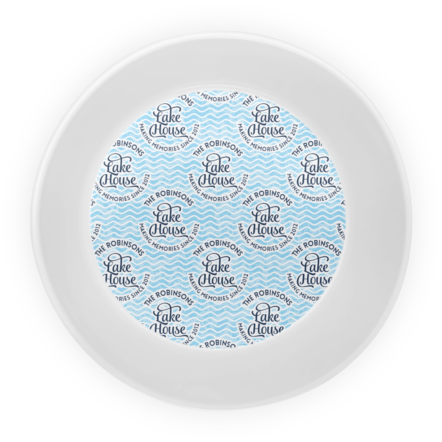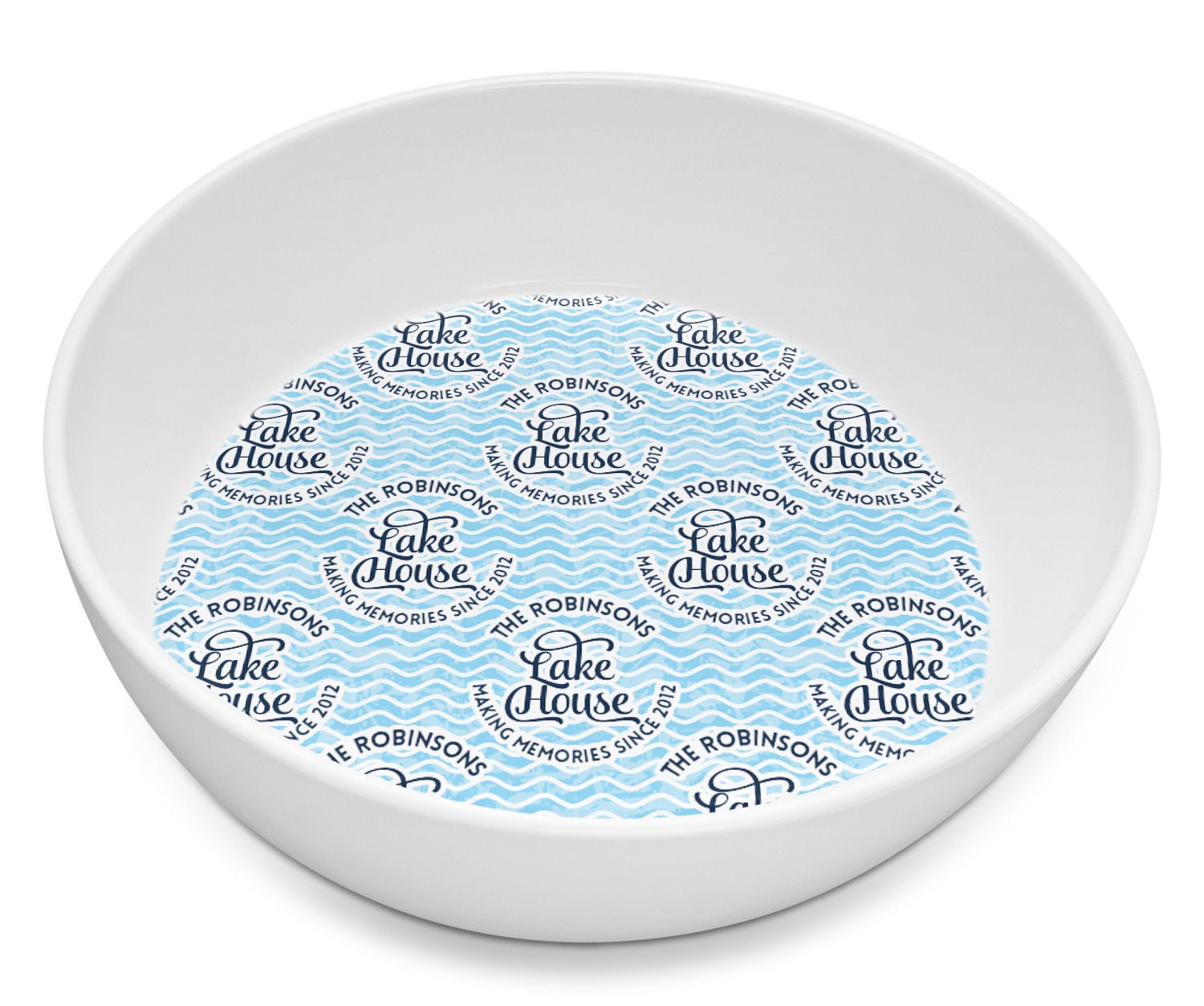 Our melamine dinnerware are BPA free, break-resistant, and dishwasher safe. Our first model has a more functional, standard look, and can hold up to 8 ounces of liquid. The second version we offer has a tapered edge and can hold up to 12 ounces of liquid. Both bowls display your customization on the base of the bowl's inside, and the exterior of the two models are both white.