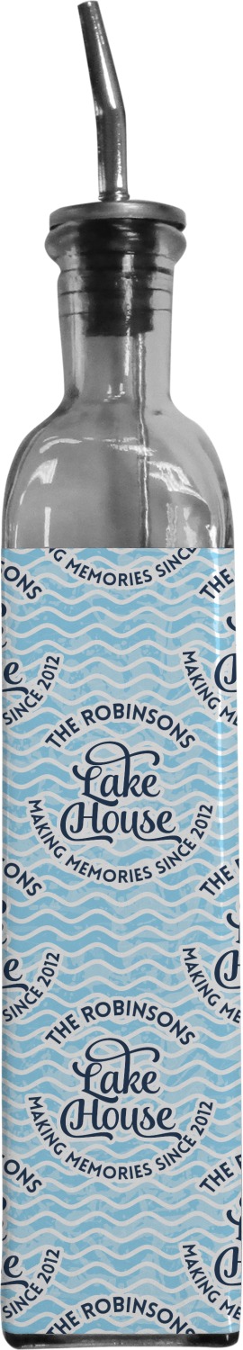 Made from recycled glass in Spain, these oil bottles have a classic, delicate look, and are accompanied by a metal spout for controlled pouring. Each bottle holds approximately 13 ounces and measures at 12 by 2 inches. We customize your glass oil bottle by applying your personalized design on the front and sides, using an adhesive. Our customizable stickers are made from high quality, gloss vinyl and are printed with waterproof, eco-solvent inks. These pieces are machine cut for accuracy and symmetry. The result is a robust, waterproof, adhesive decal that will not fade or deteriorate with time.