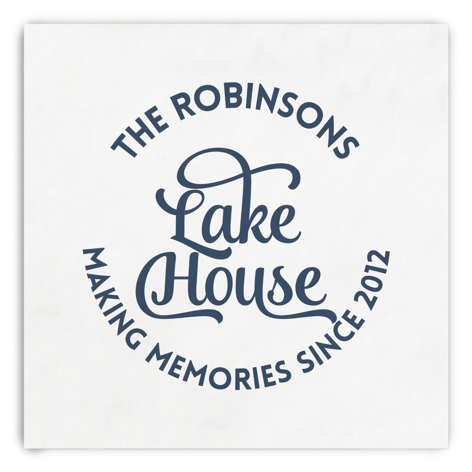 This Lake House Design is serene and calm. We create a "personalized" pattern for this design. The pattern consists of serene blue waves and a round badge that has the words Lake House in the middle. The top text & bottom texts can be customized; we chose to use the family name for the top and instead of using established in 2012, we chose to use the words "Making Memories Since 2012".