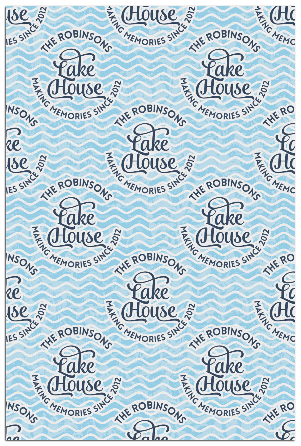 This Lake House Design is serene and calm. We create a "personalized" pattern for this design. The pattern consists of serene blue waves and a round badge that has the words Lake House in the middle. The top text & bottom texts can be customized; we chose to use the family name for the top and instead of using established in 2012, we chose to use the words "Making Memories Since 2012".