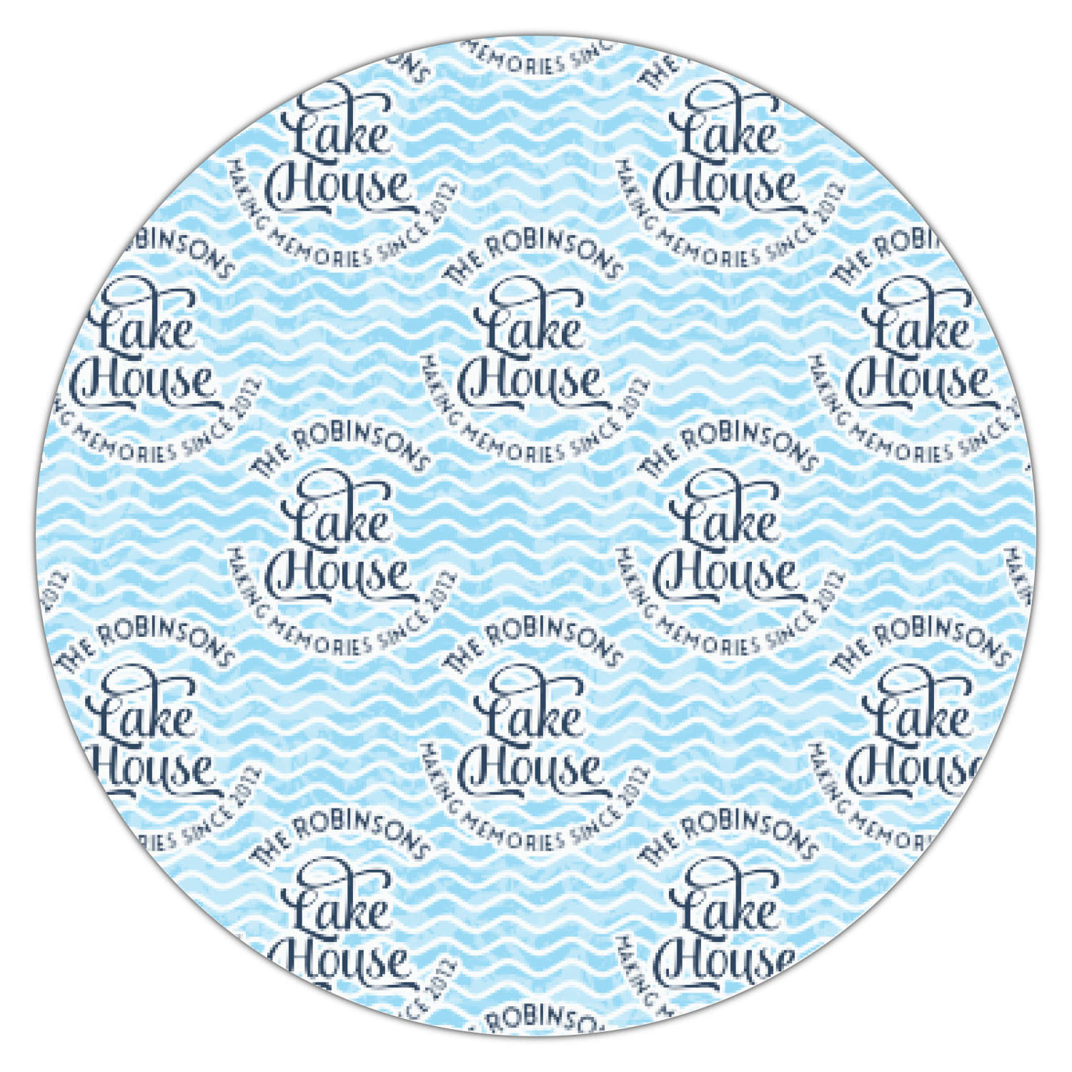 This Lake House Design is serene and calm. We create a "personalized" pattern for this design. The pattern consists of serene blue waves and a round badge that has the words Lake House in the middle. The top text & bottom texts can be customized; we chose to use the family name for the top and instead of using established in 2012, we chose to use the words "Making Memories Since 2012".