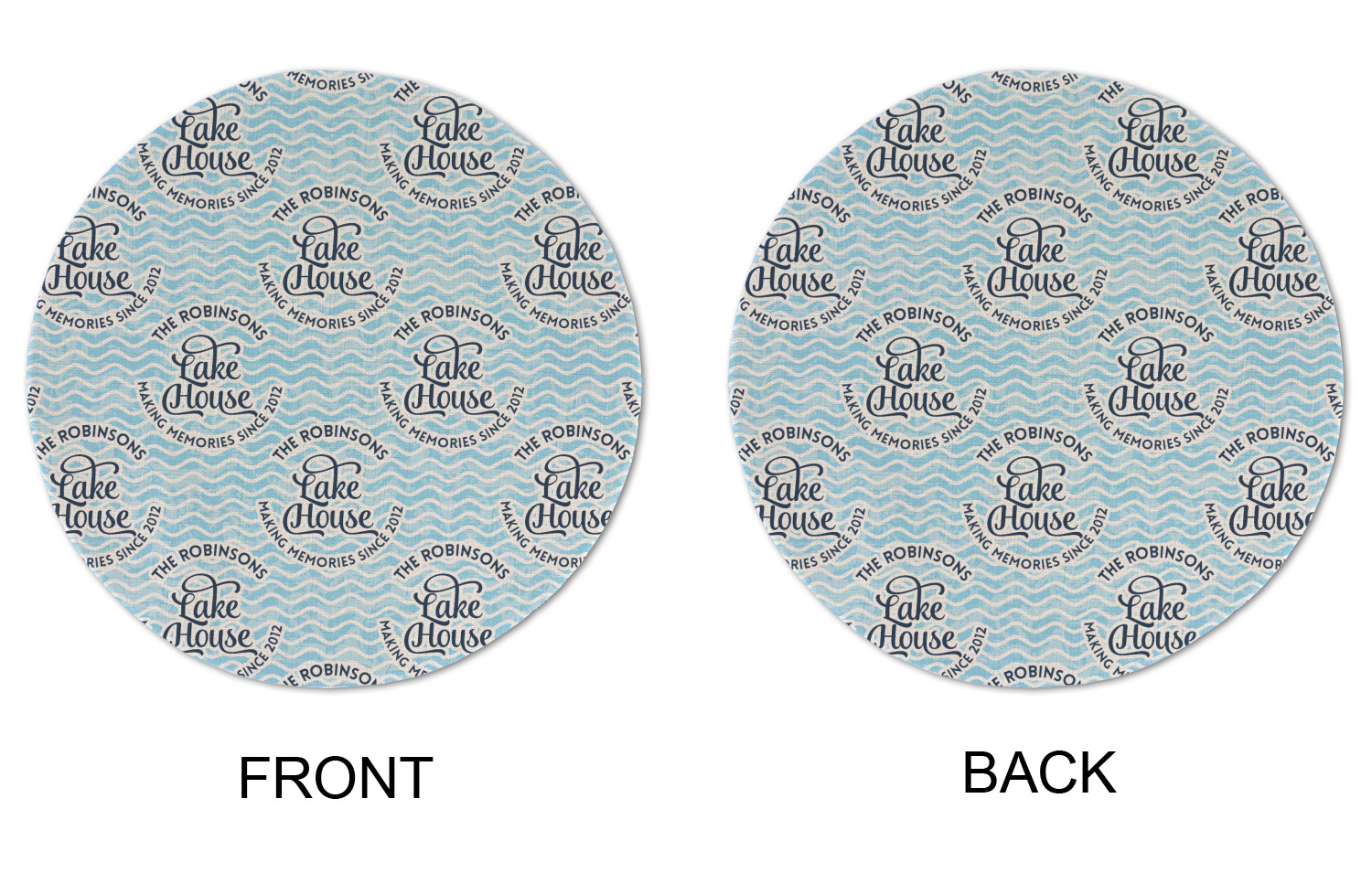 This Lake House Design is serene and calm. We create a "personalized" pattern for this design. The pattern consists of serene blue waves and a round badge that has the words Lake House in the middle. The top text & bottom texts can be customized; we chose to use the family name for the top and instead of using established in 2012, we chose to use the words "Making Memories Since 2012".