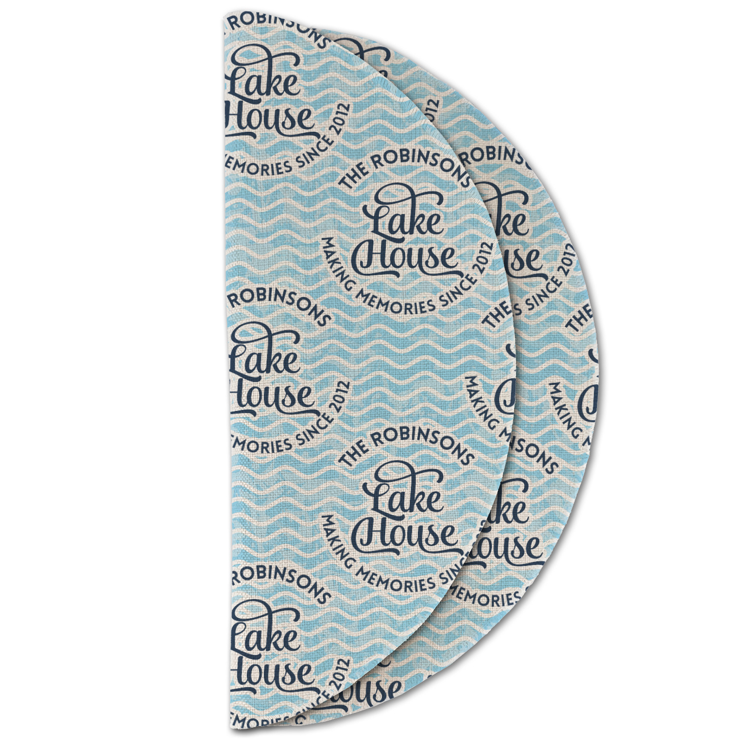 This Lake House Design is serene and calm. We create a "personalized" pattern for this design. The pattern consists of serene blue waves and a round badge that has the words Lake House in the middle. The top text & bottom texts can be customized; we chose to use the family name for the top and instead of using established in 2012, we chose to use the words "Making Memories Since 2012".