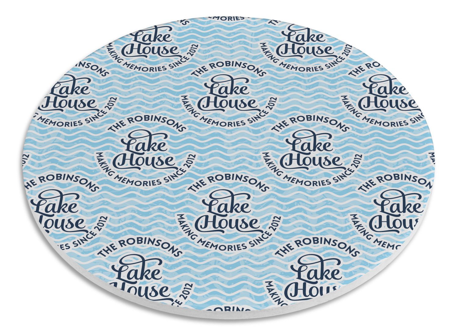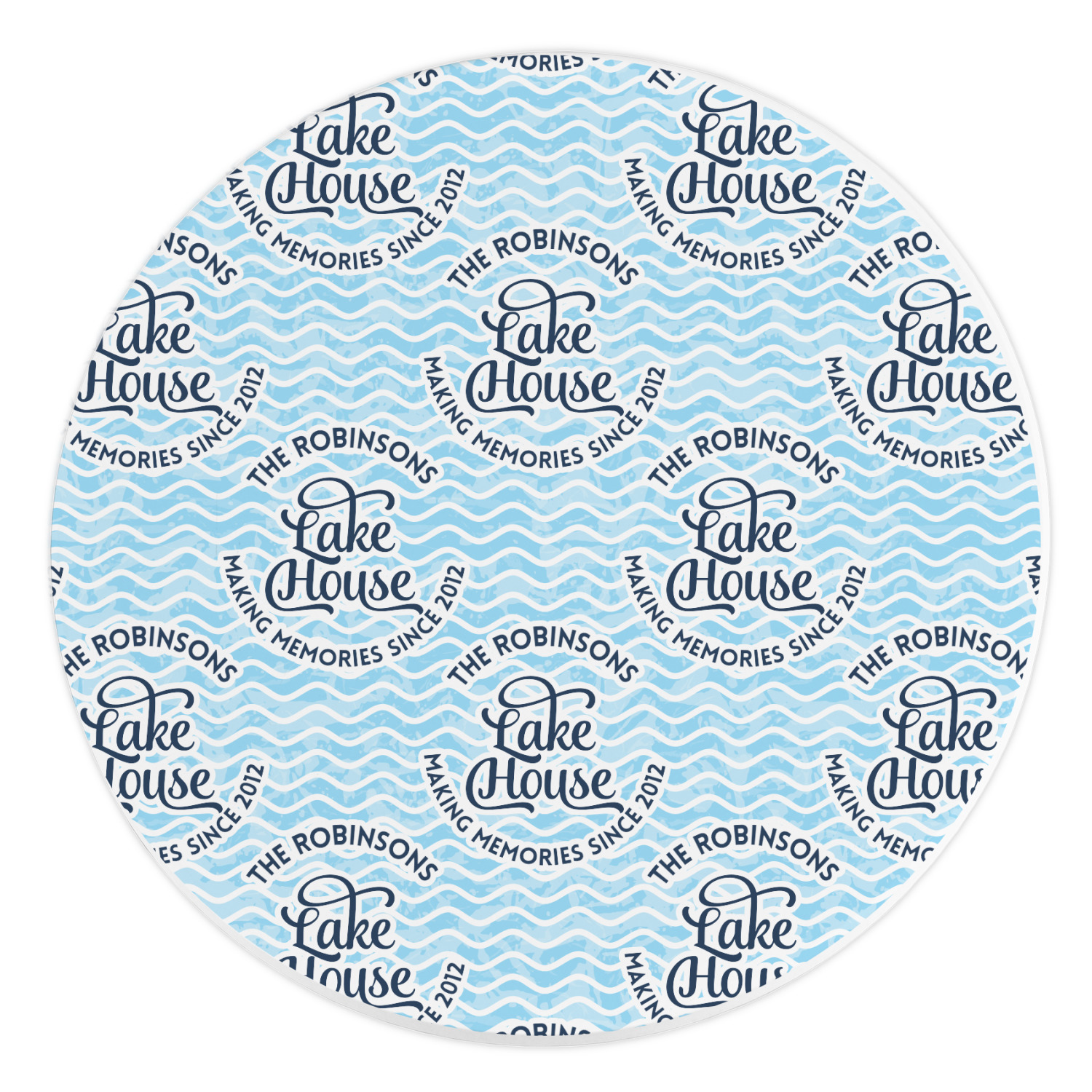 This Lake House Design is serene and calm. We create a "personalized" pattern for this design. The pattern consists of serene blue waves and a round badge that has the words Lake House in the middle. The top text & bottom texts can be customized; we chose to use the family name for the top and instead of using established in 2012, we chose to use the words "Making Memories Since 2012".